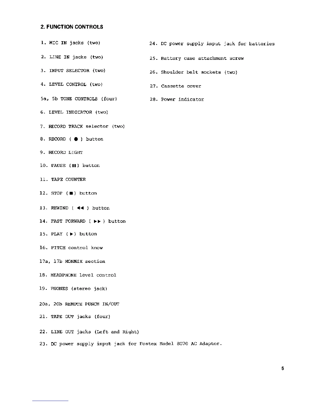 Fostex X-15 - Function Controls