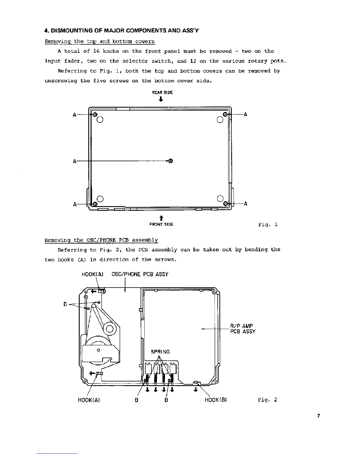 Fostex X-15 - Dismounting of Major Components and Assy; Removing the top and bottom covers; Removing the OSC;PHONE PCB assembly