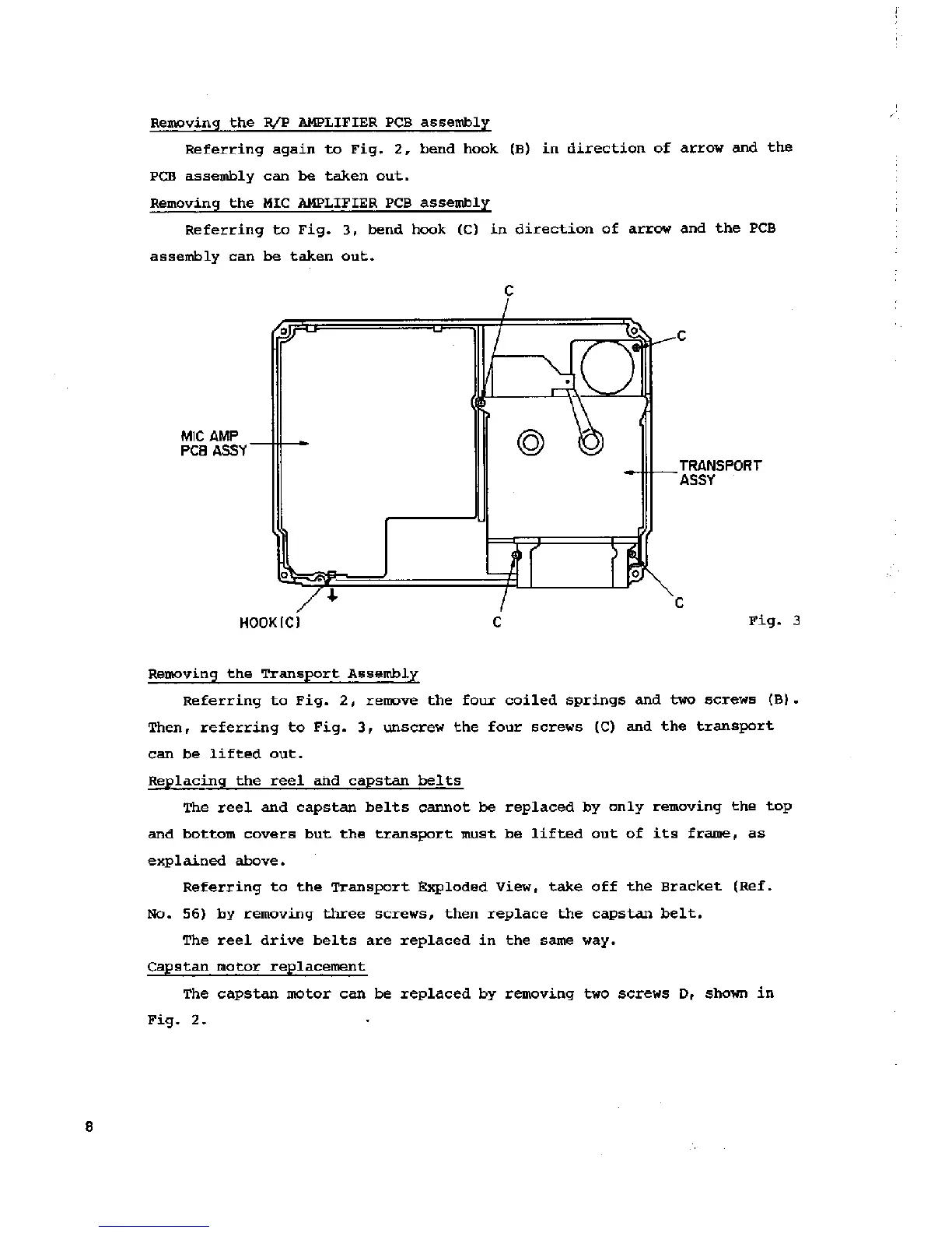Fostex X-15 - Removing the R;P AMPLIFIER PCB assembly; Removing the Transport Assembly