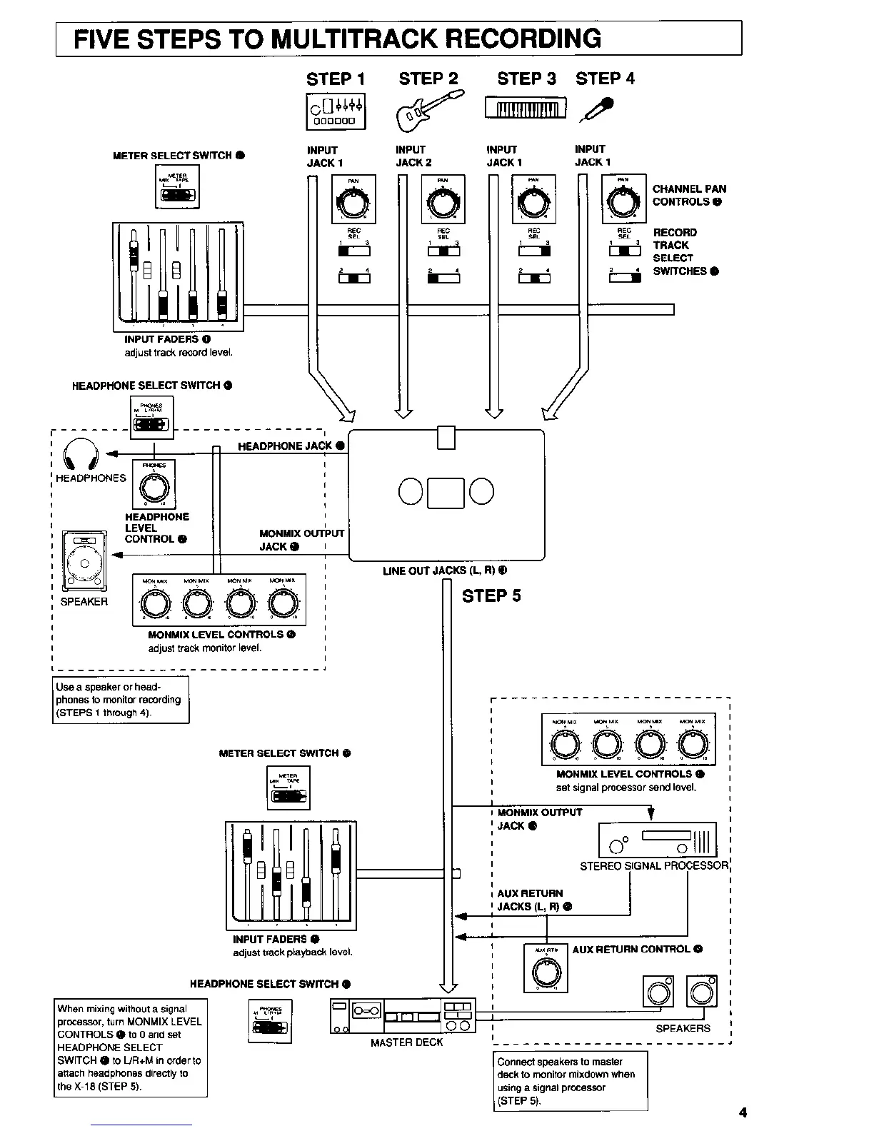 Fostex X-18H - Multitrack Recording Workflow Overview; Step-by-Step Recording Guide