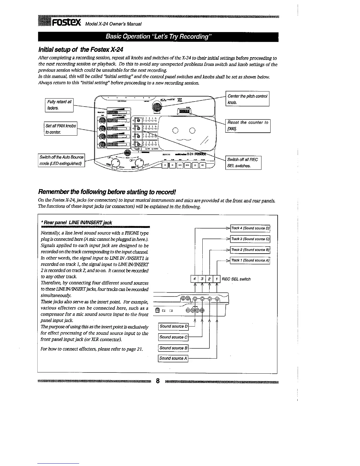 Fostex X-24 - Basic Recording and Playback Procedures; Initial Setup for Recording