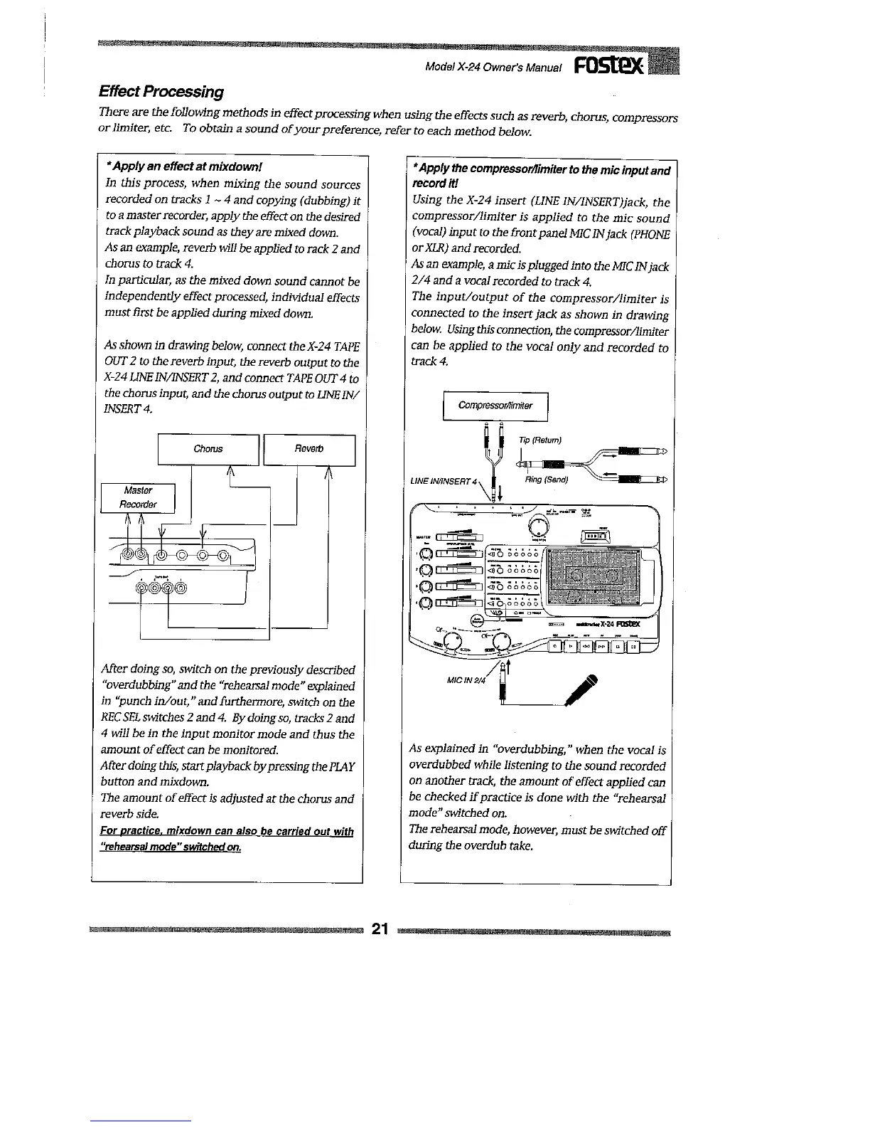 Fostex X-24 - Effect Processing Methods; Applying Effects During Mixdown; Compressor;Limiter on Mic Input