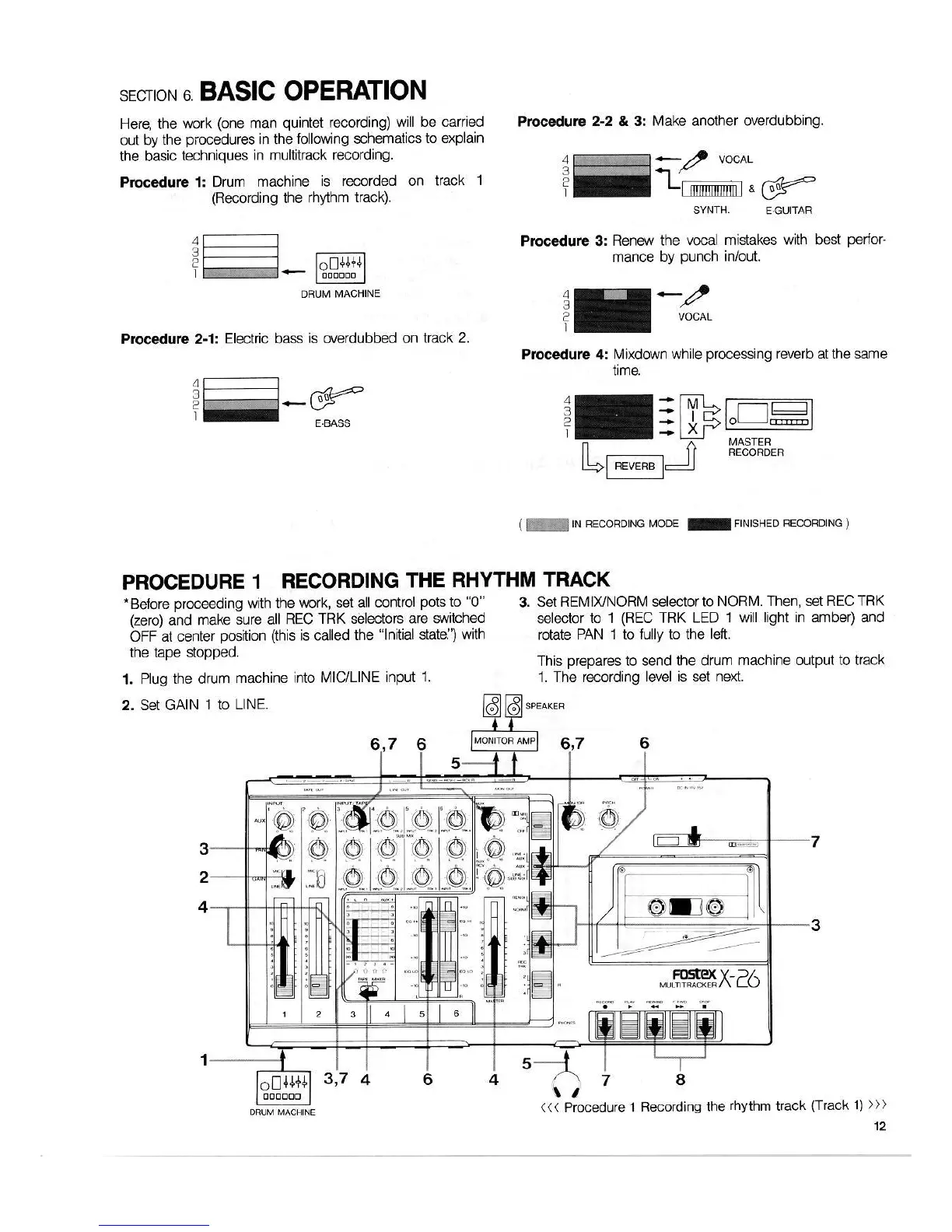 Fostex X-26 - Basic Multitrack Recording Procedures; Rhythm Track Recording and Overdubbing