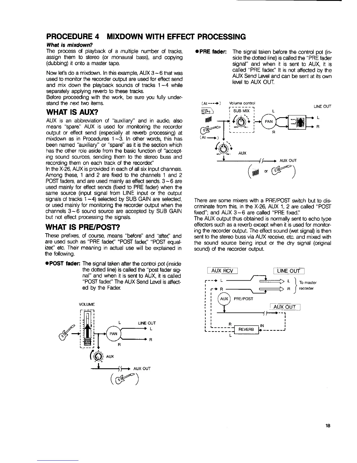 Fostex X-26 - Mixdown with Effect Processing; Mixdown Process and AUX Functions; Understanding PRE;POST Fader Signals