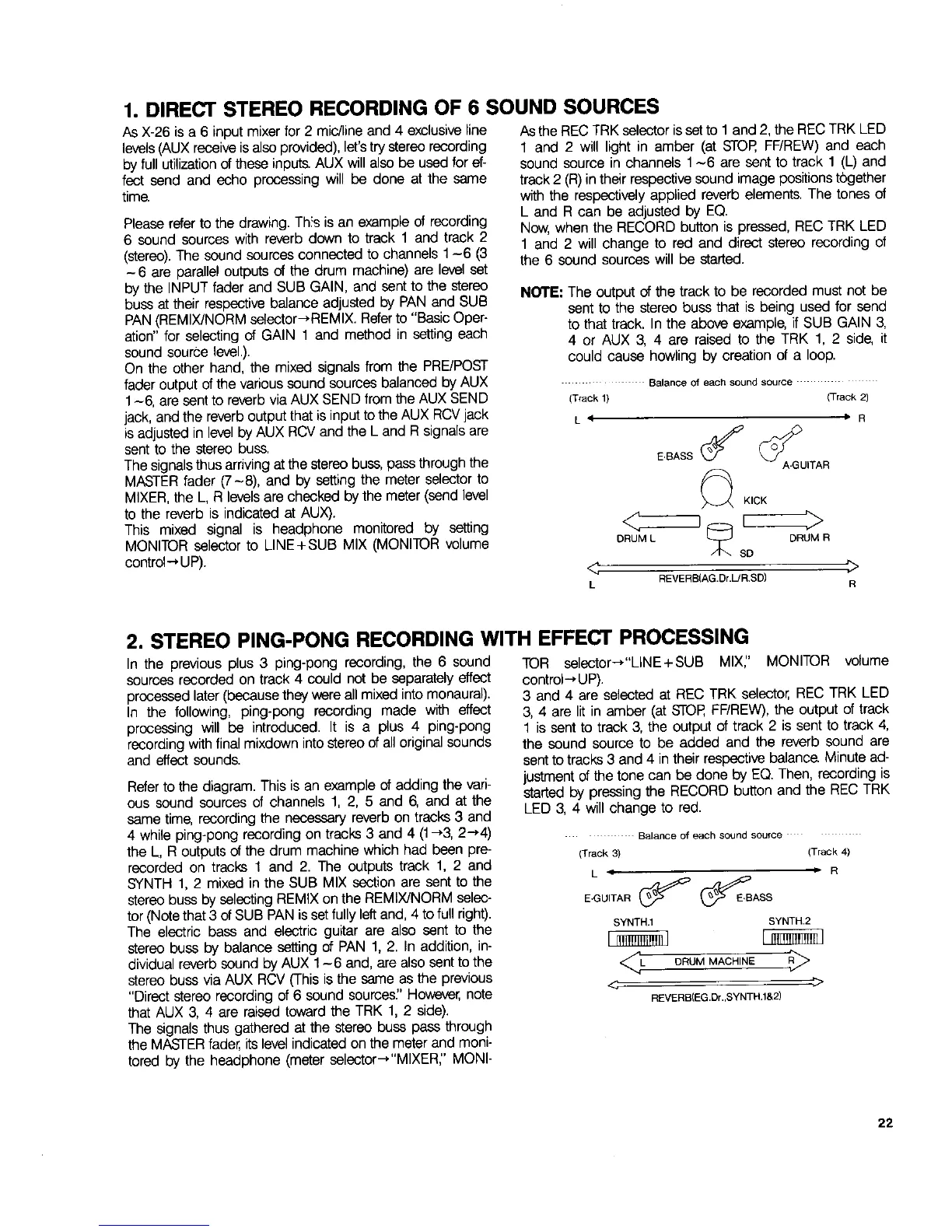 Fostex X-26 - Operating Examples and Applications; Direct Stereo Recording of 6 Sources; Stereo Ping-Pong Recording with Effects