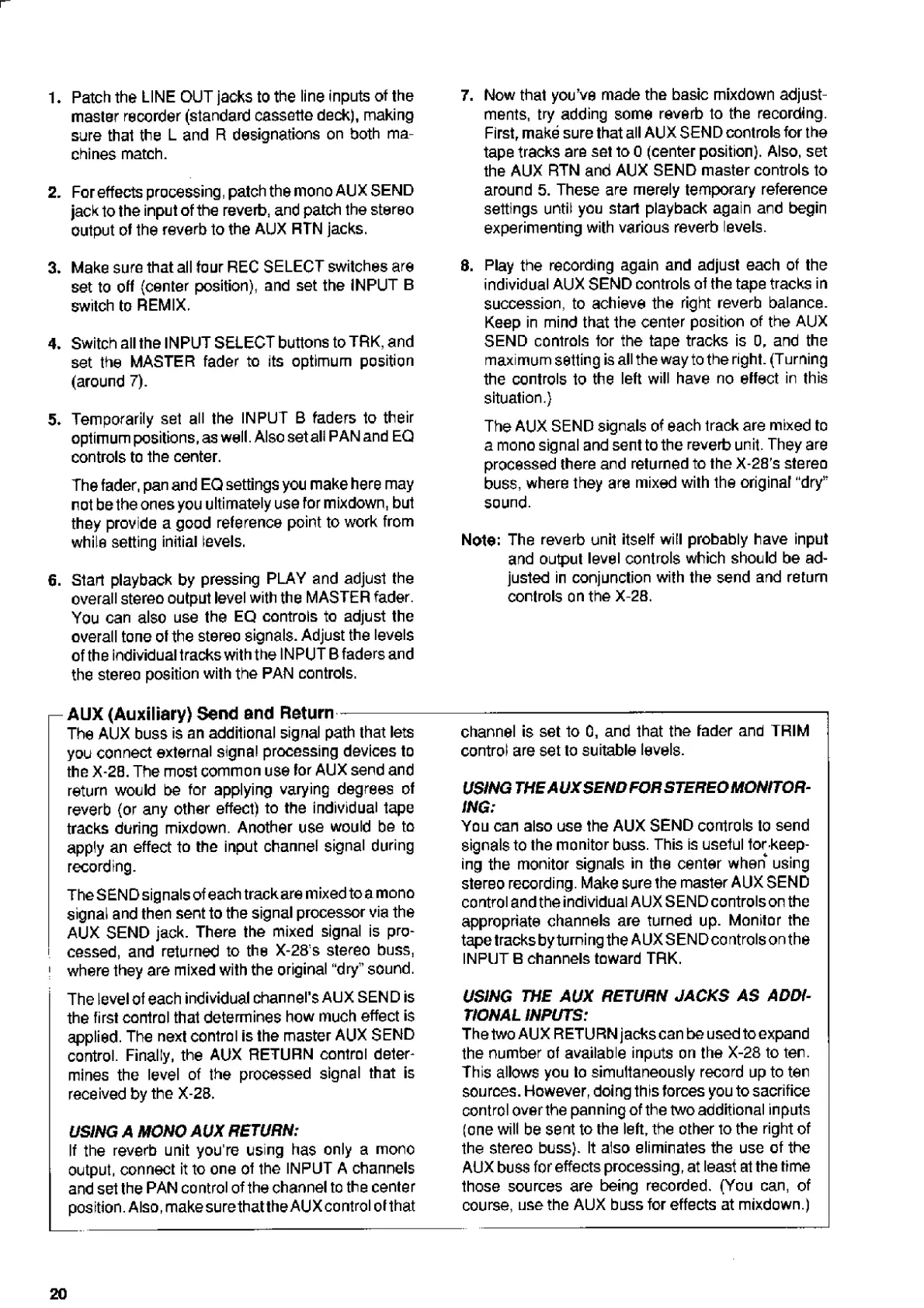 Fostex X-28 - AUX Send and Return