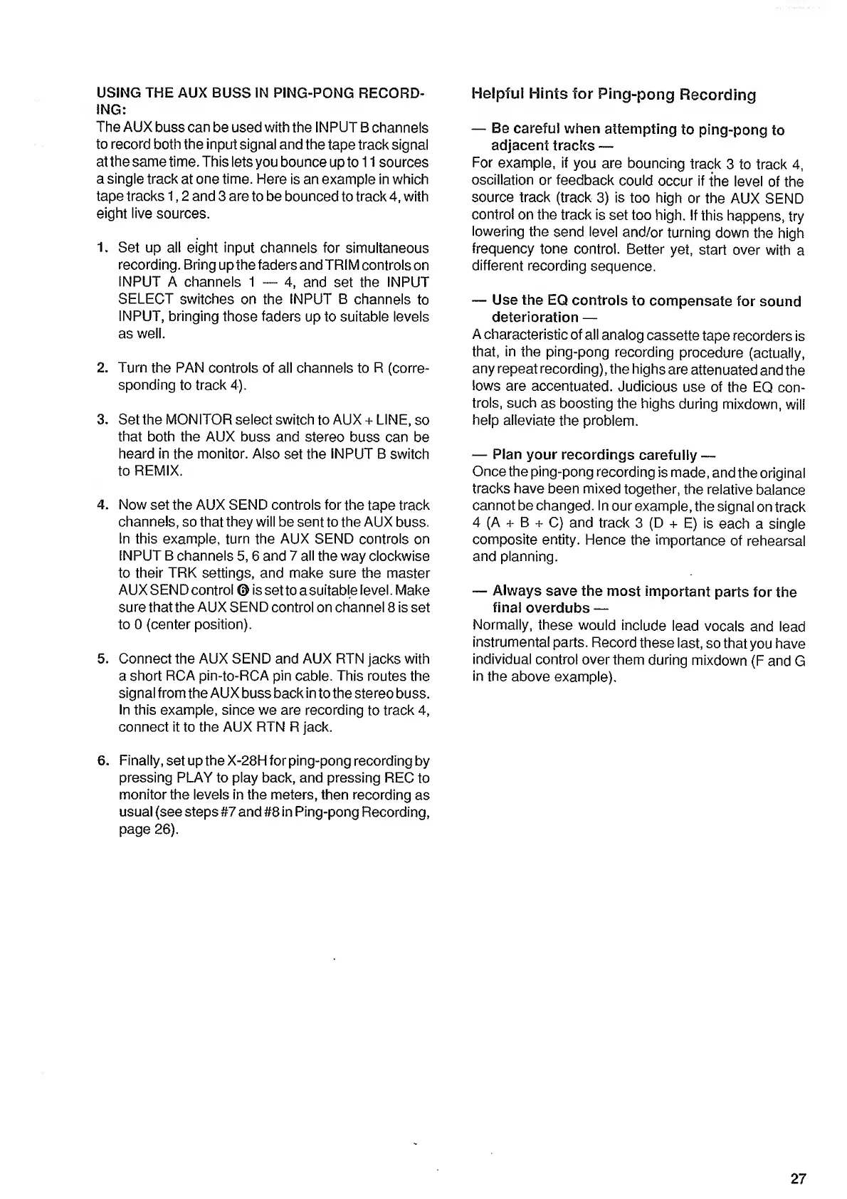 Fostex X-28H - Helpful Hints for Ping-Pong Recording.27