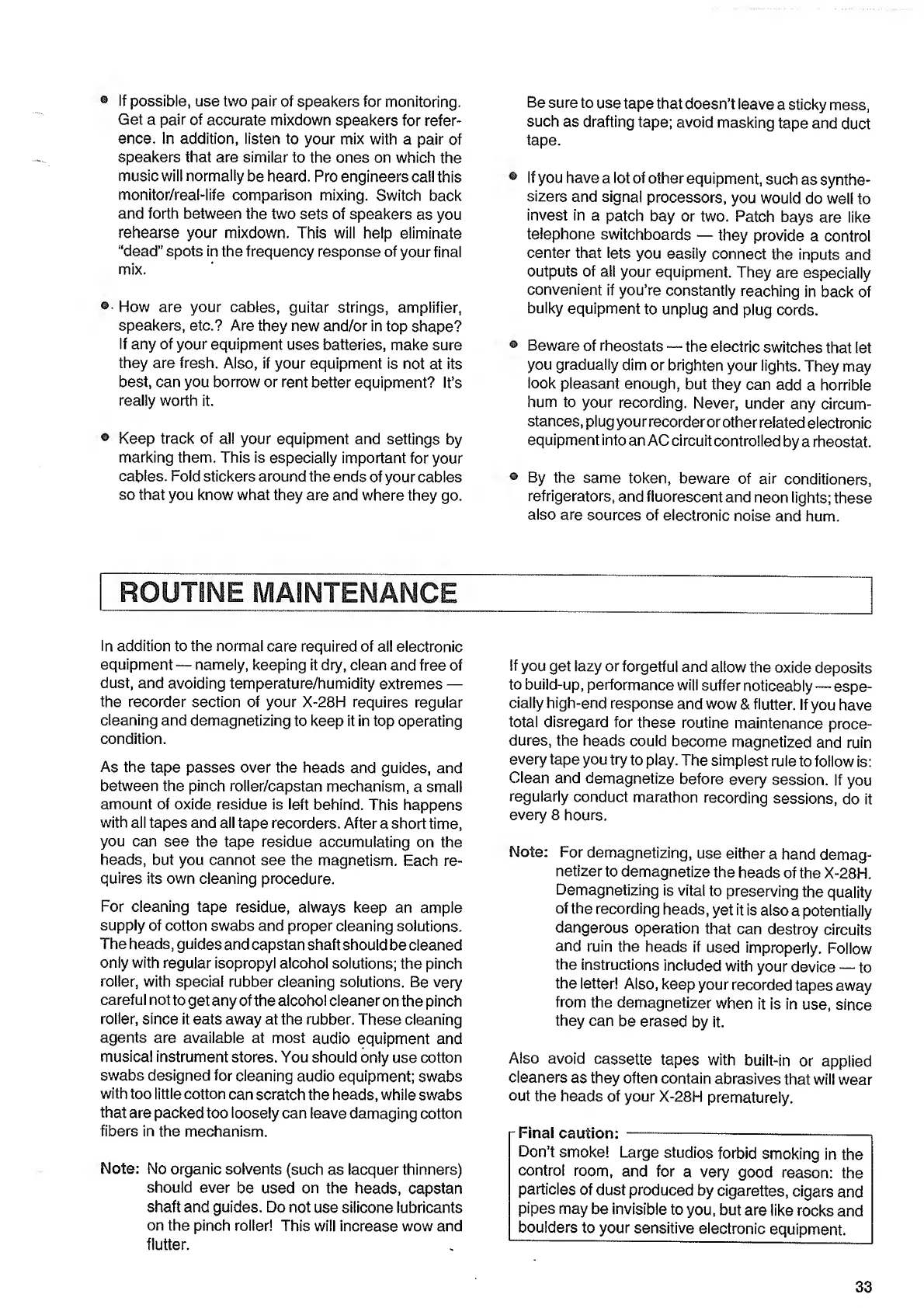 Fostex X-28H - Troubleshooting and Specifications; Common Operational Problems