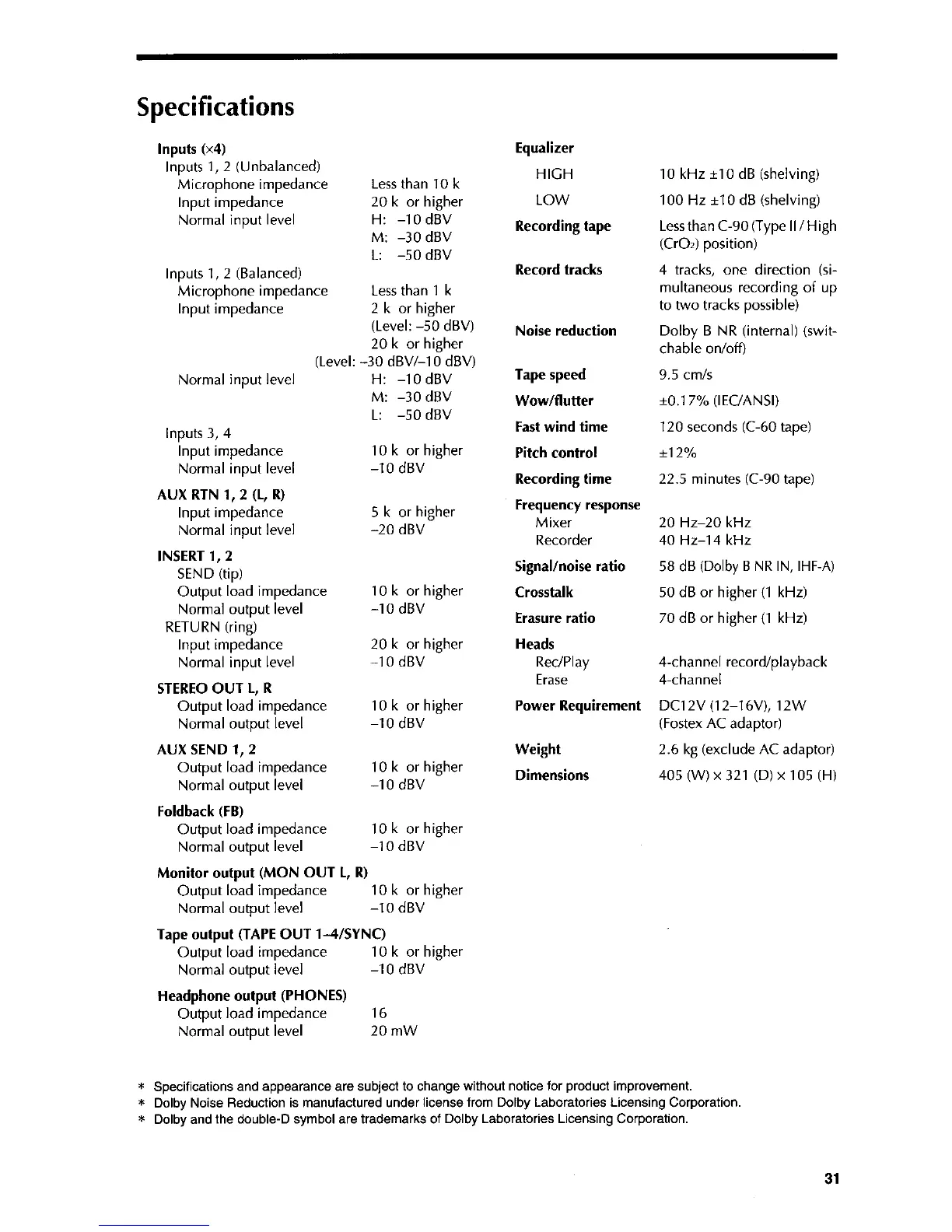 Fostex X-55 - Technical Specifications; Device Specifications