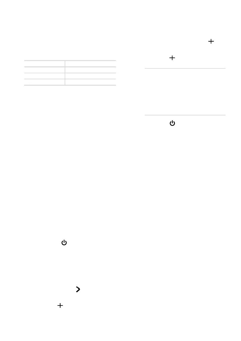 Switch off: Press the - button for three seconds.