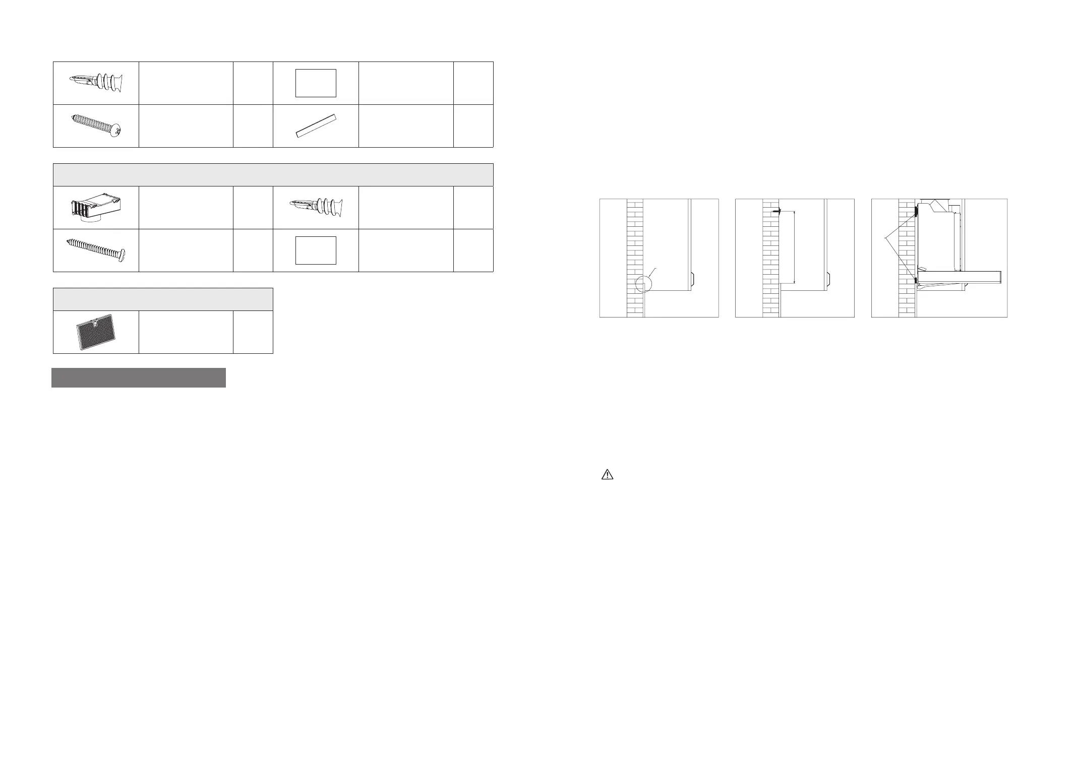 7. The wall on which the range hood is installed should be sufciently strong.