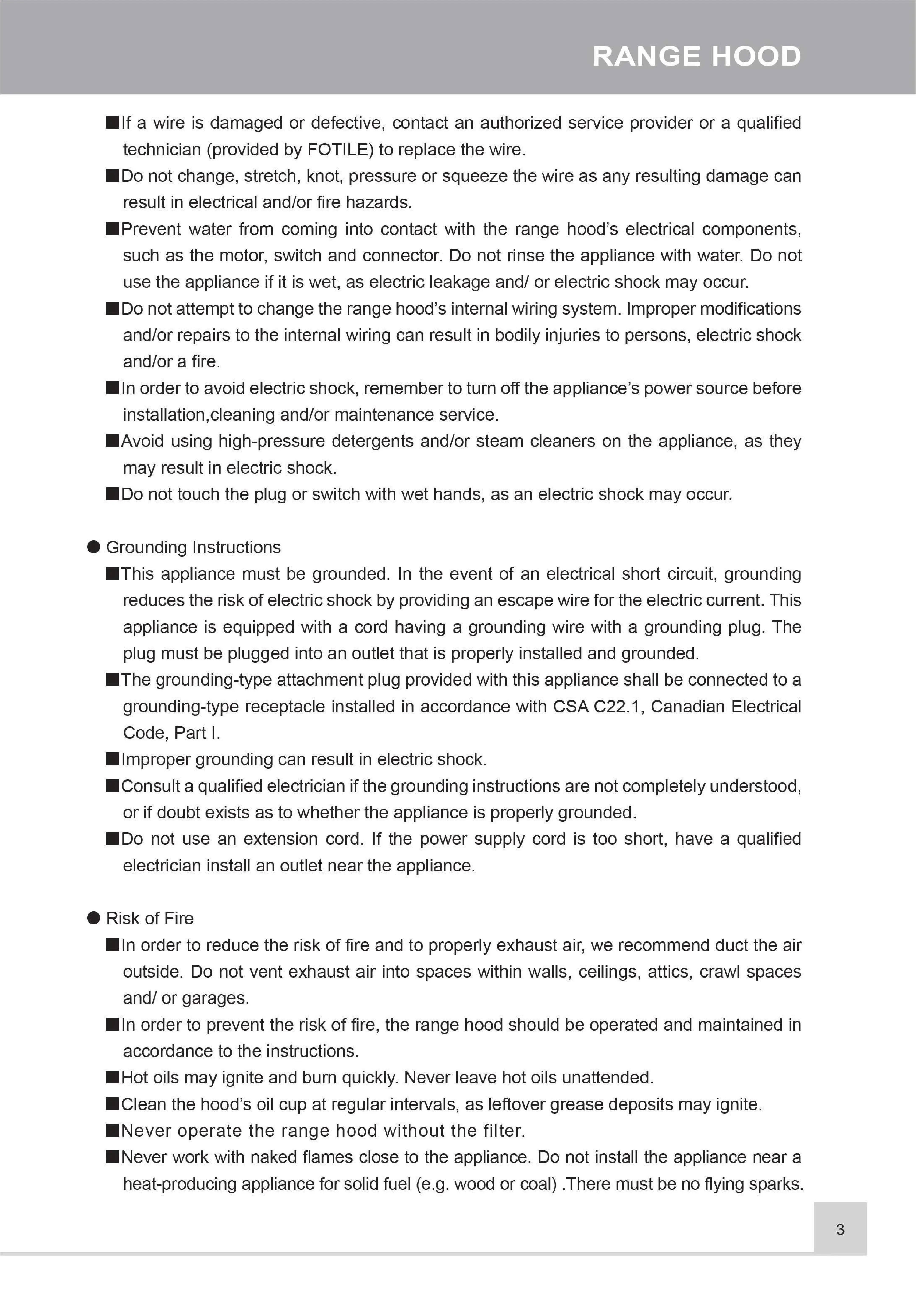 FOTILE EMS9026 - Electrical Safety and Grounding; Fire Prevention Measures