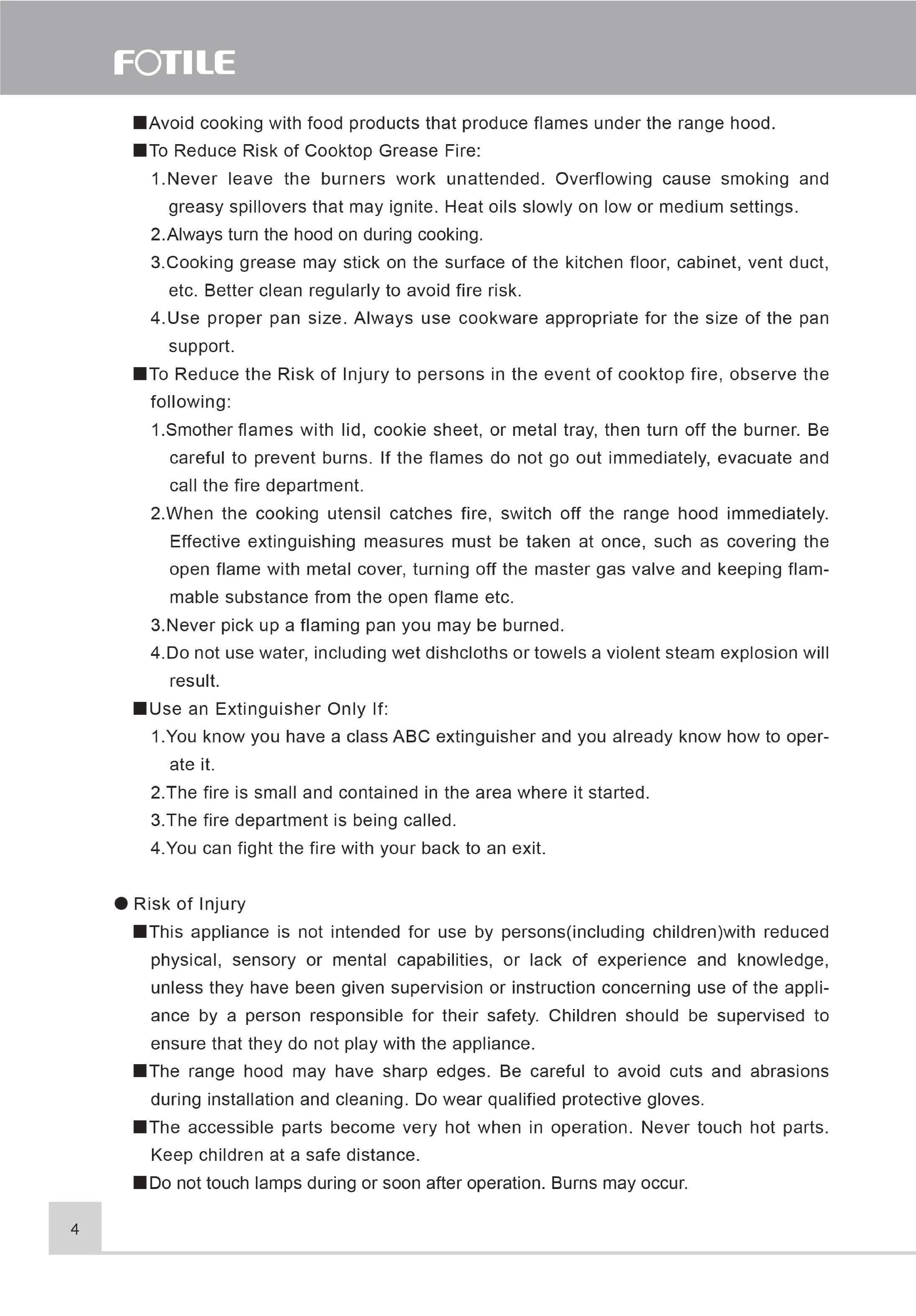FOTILE EMS9026 - Risk of Injury and Other Hazards