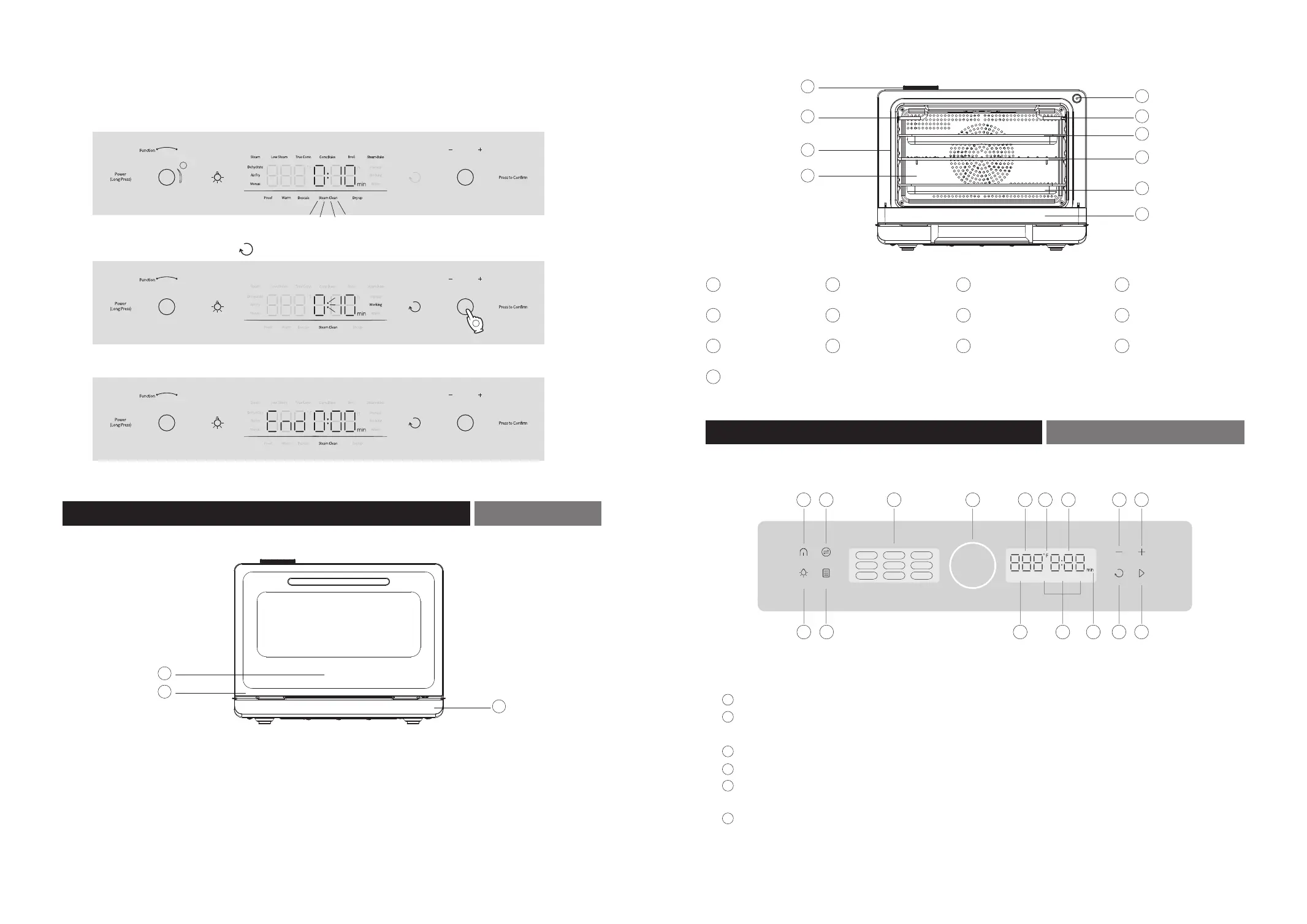 Power button: Press and hold the button for 1 second to turn on or off the oven.