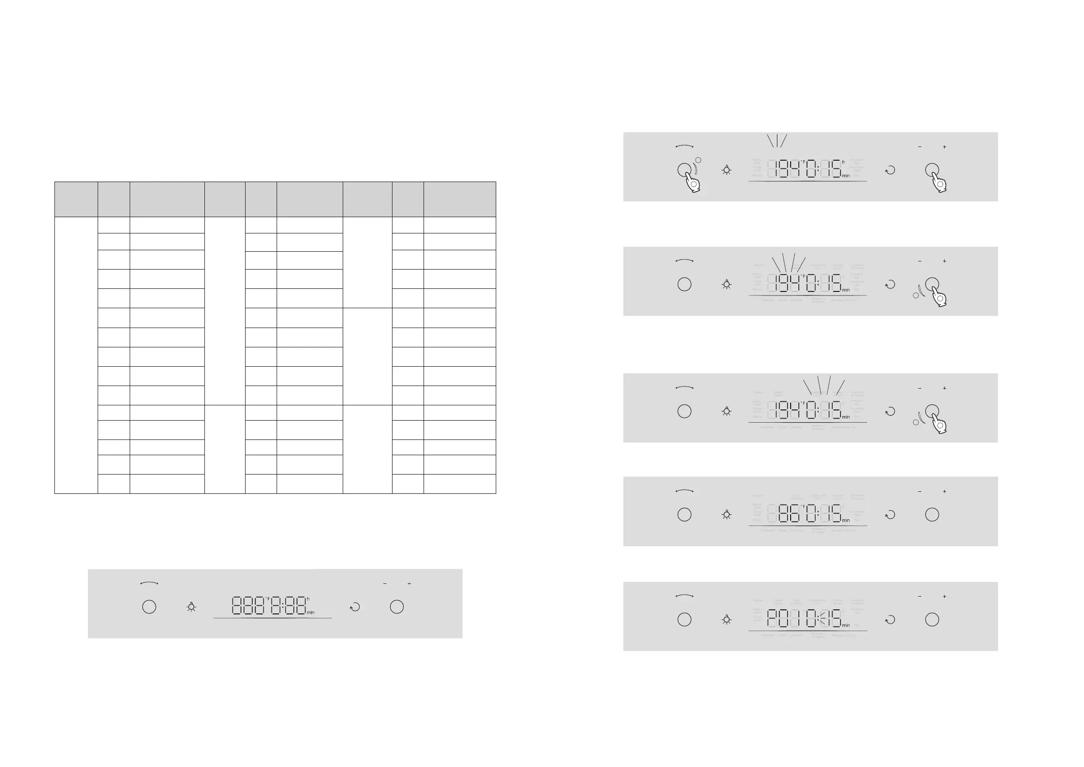 Après la mise sous tension du four, toutes les icônes et tous les mots clignoteront