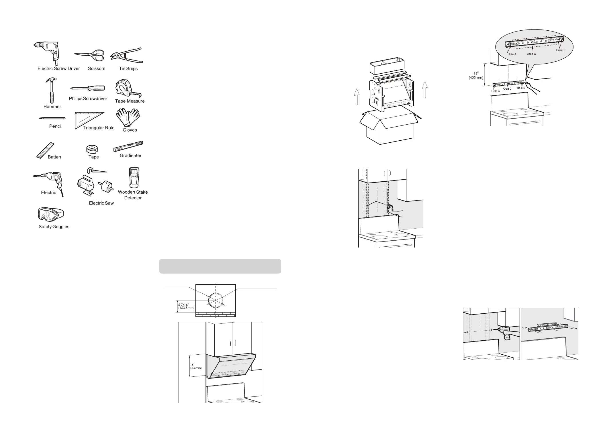 wall where the hood will be installed. Also, mark