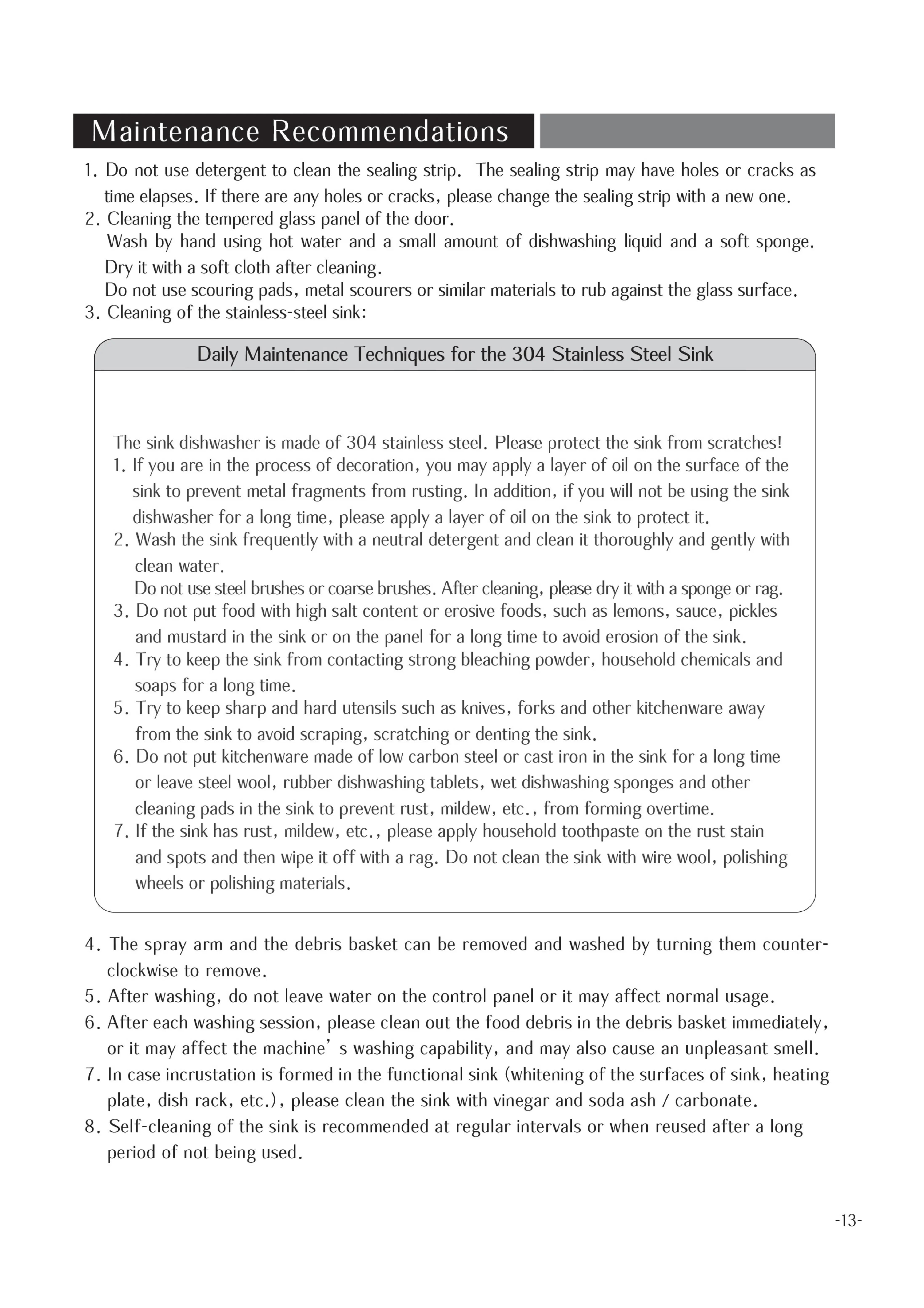 FOTILE SD2F-P3 - Maintenance Recommendations; Daily Maintenance Techniques for the 304 Stainless Steel Sink