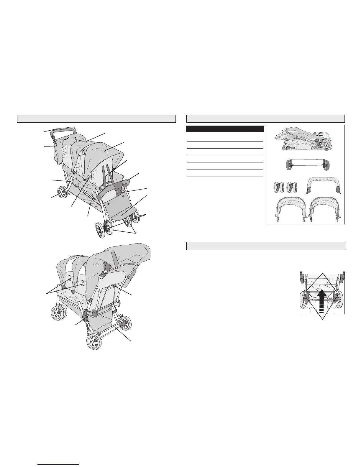 1. Place stroller on its back so that the footrest is facing up.