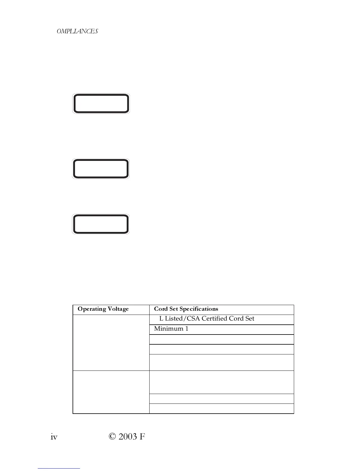 2SHUDWLQJ9ROWDJH &RUG6HW6SHFLILFDWLRQV