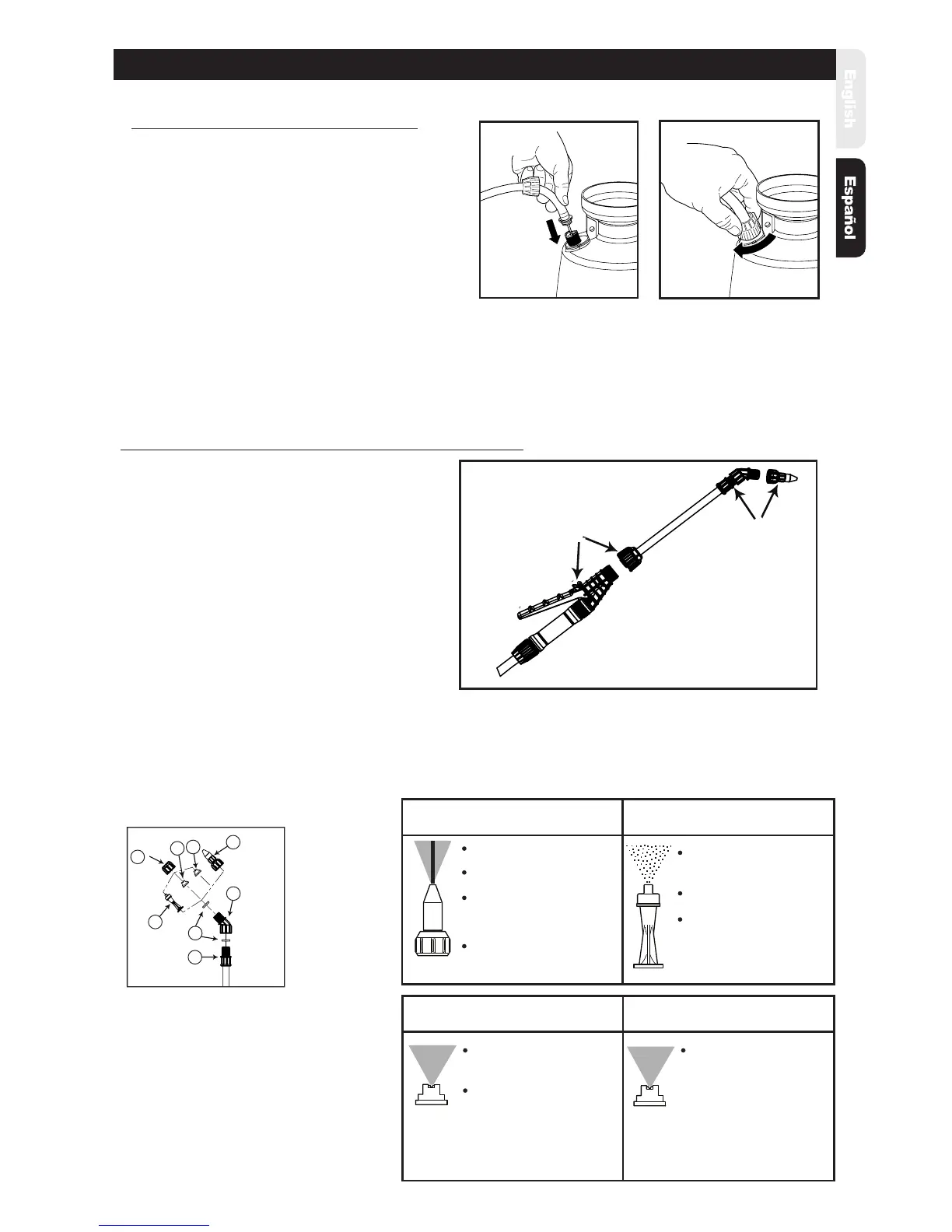 Usos de las boquillas roja con Usos de las boquillas amarilla con