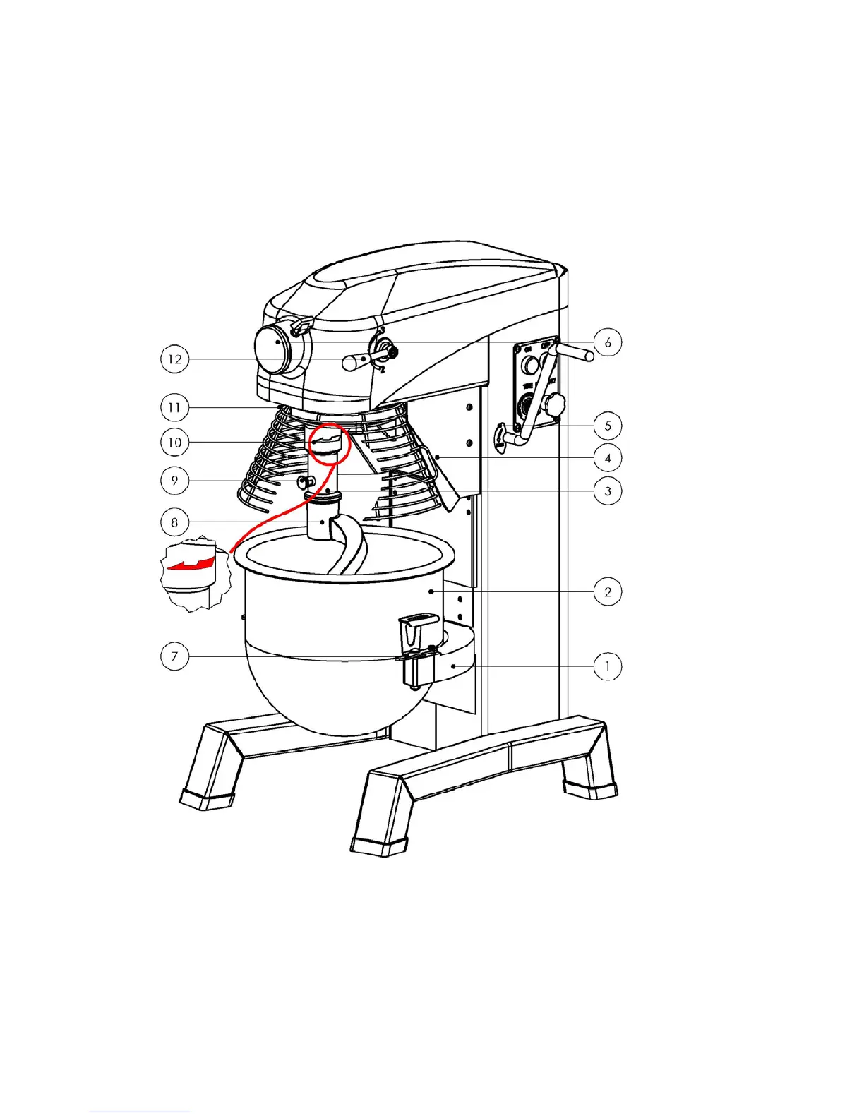 7. Barrel Plate 8. Stirrer 9. Fixed Handle Mixer