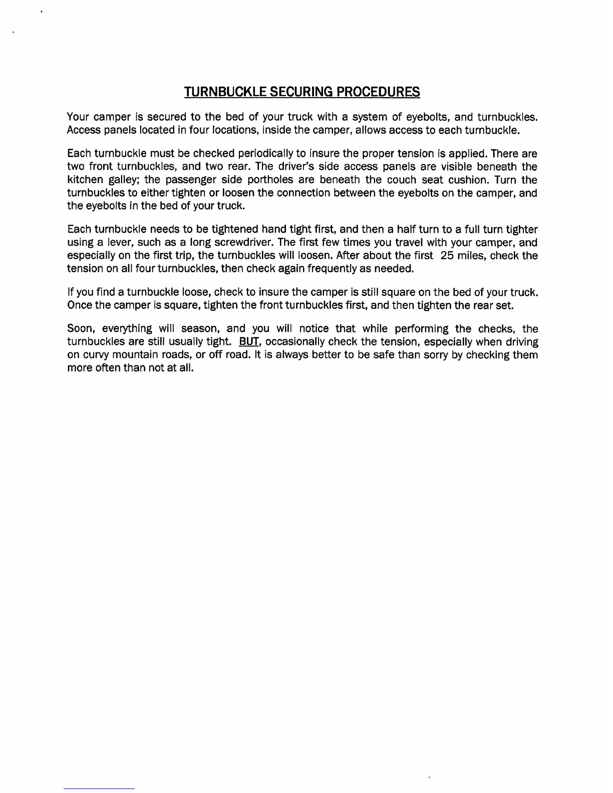 Four Wheel HAWK - Turnbuckle Securing Procedures; Checking Turnbuckle Tension; Securing After Loosening
