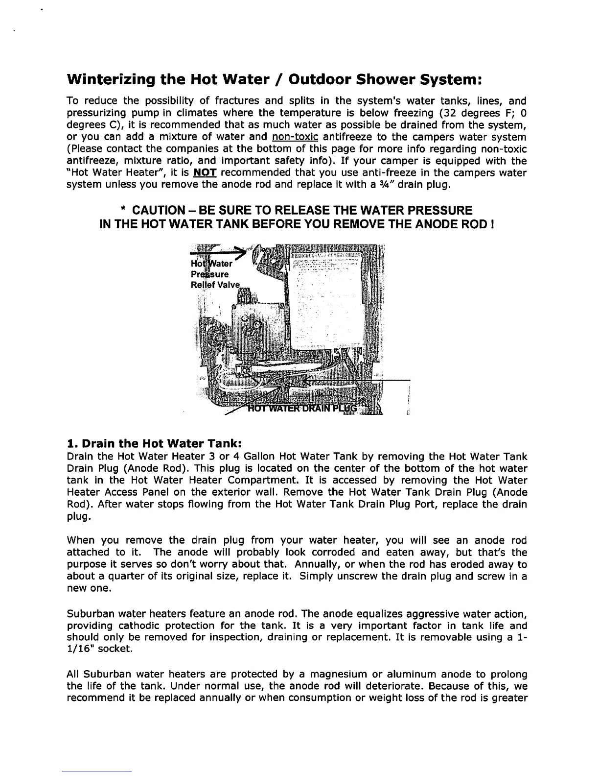 Four Wheel HAWK - Winterizing the Water System; Hot Water Tank and Anode Rod