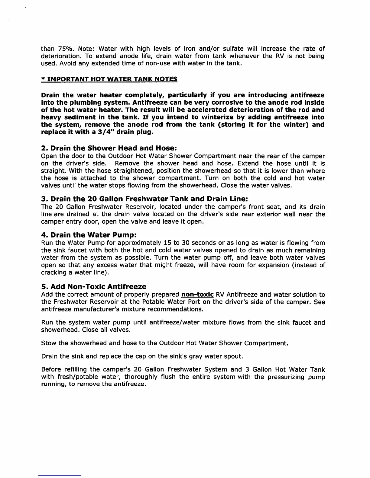 Four Wheel HAWK - Winterizing the Shower System; Draining Freshwater Tank and Pump; Adding RV Antifreeze