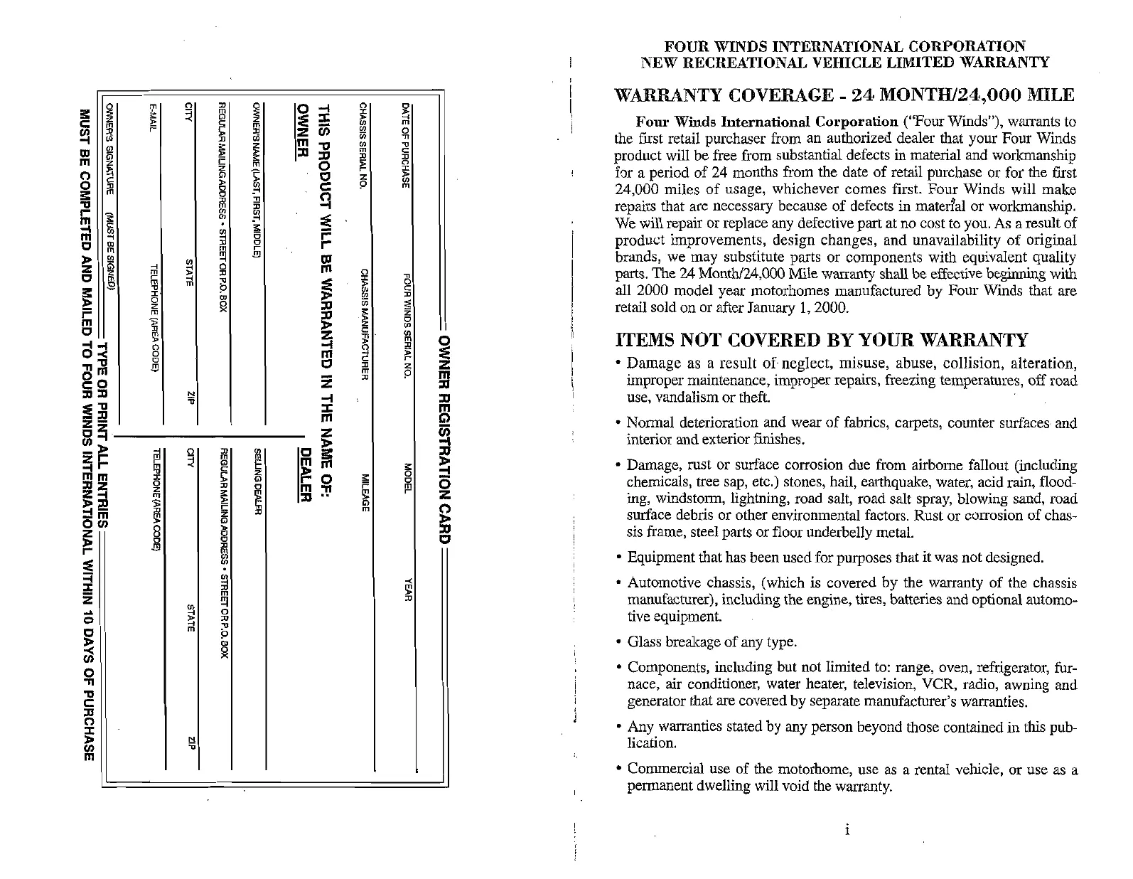 24,000 miles of usage, whichever comes first. Four Winds will make