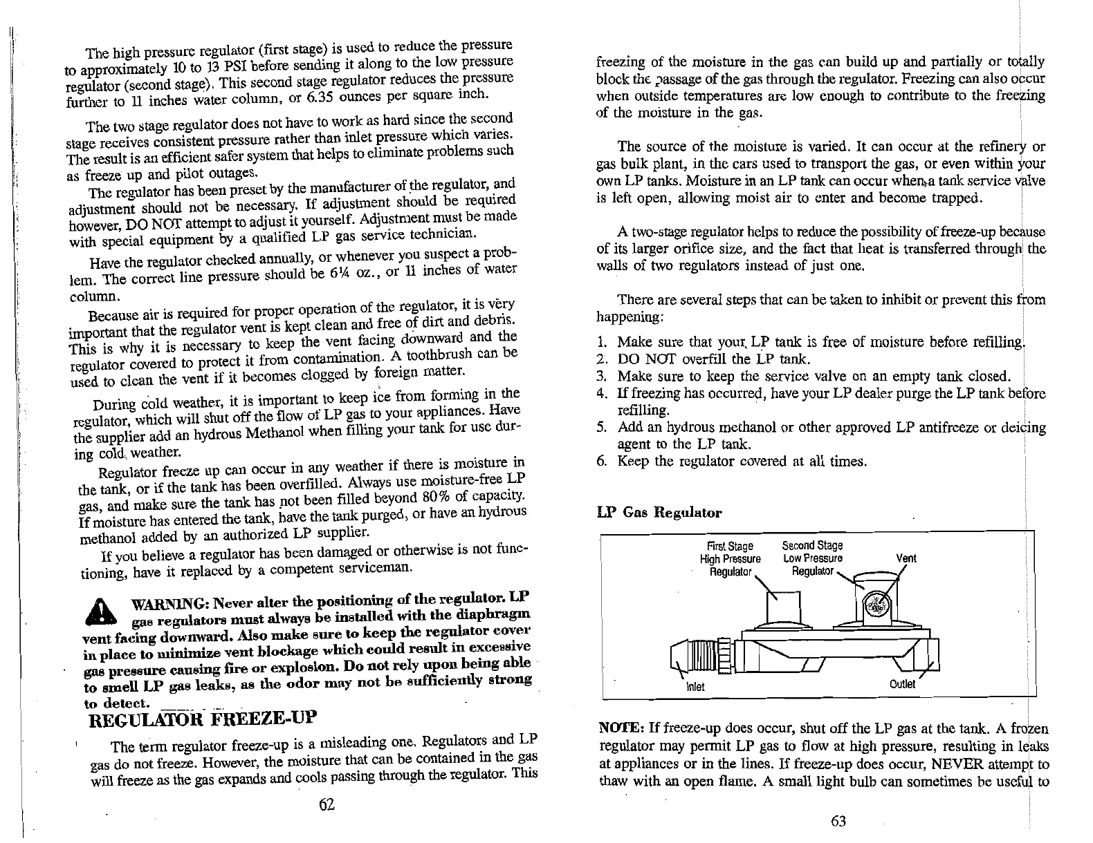 regulator, which will shut off the flow of LP gas to your appliances. Have