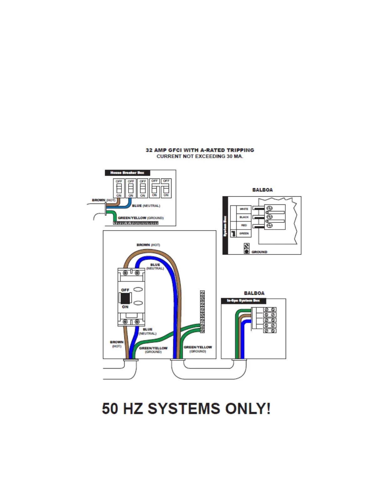 For 50 HZ Systems – 4 Pumps – Use 2 X 32 AMP Breakers