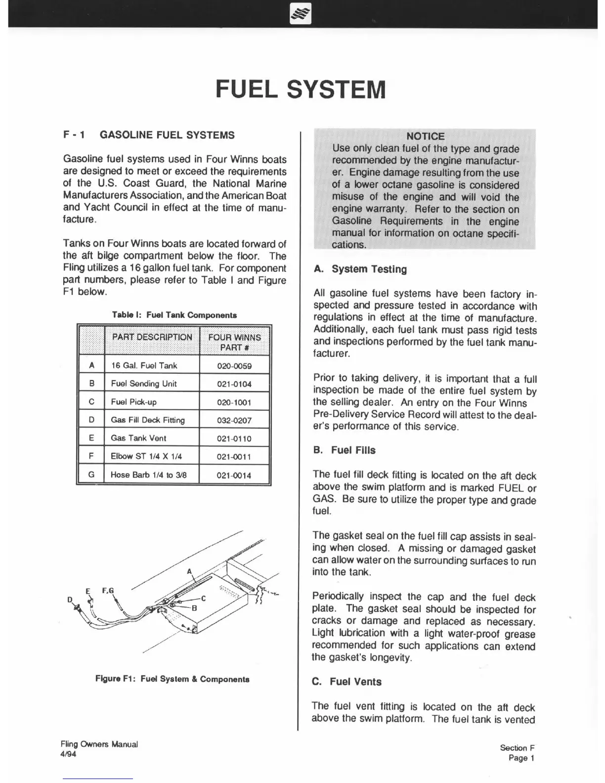Four winns Fling - FUEL SYSTEM; Fuel Fills and Vents