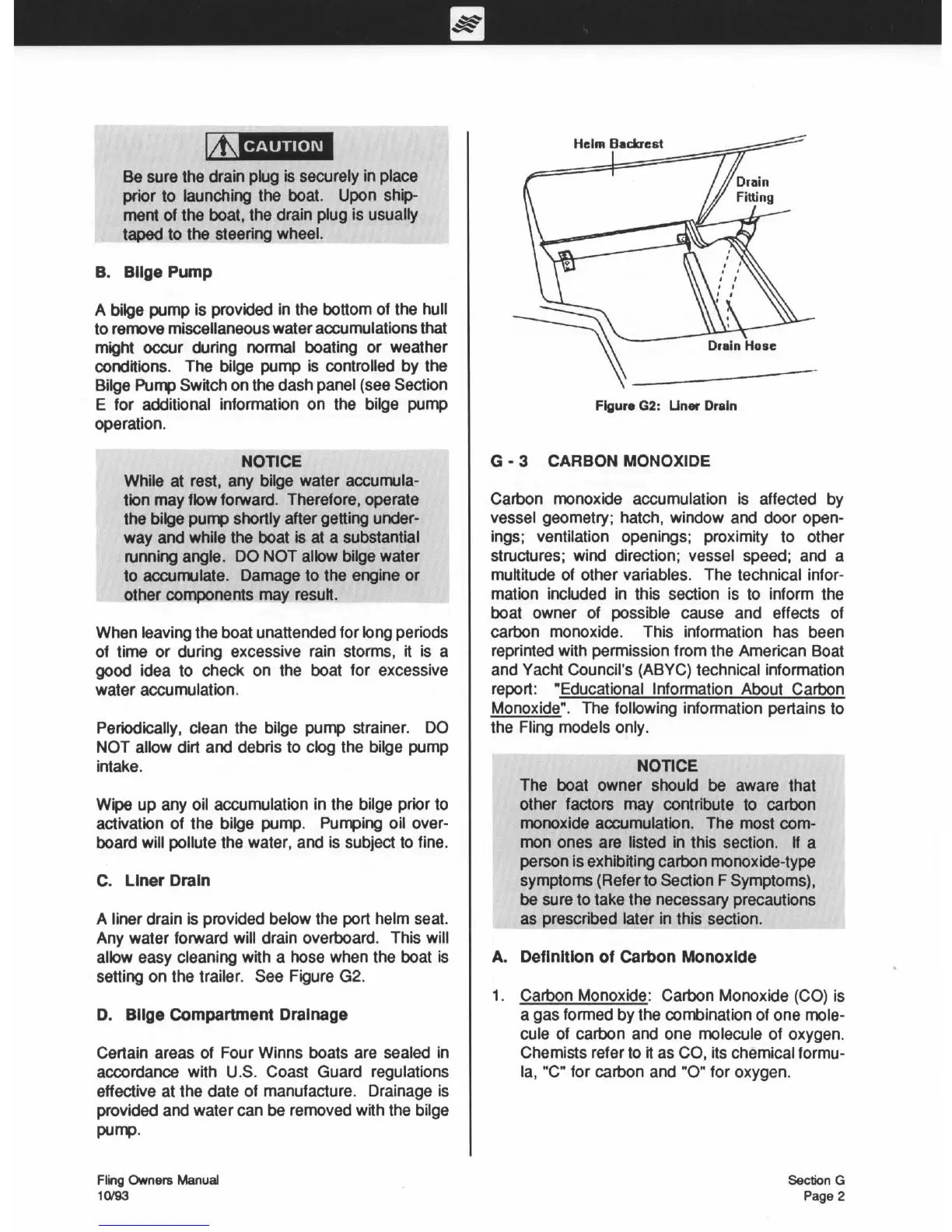 Four winns Fling - Carbon Monoxide Hazards and Definition; Bilge Pump Operation