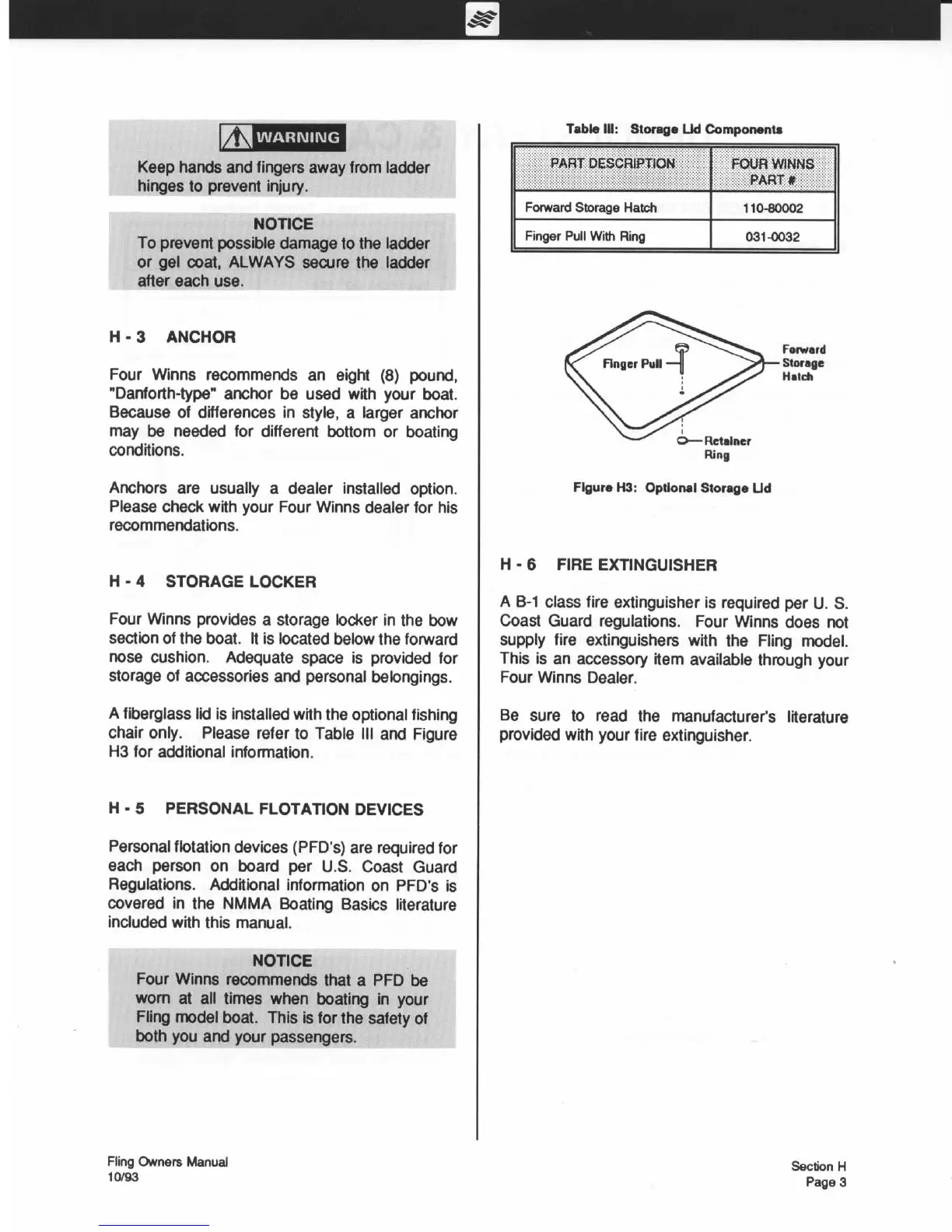Four winns Fling - Personal Flotation Devices (PFDs); Fire Extinguisher