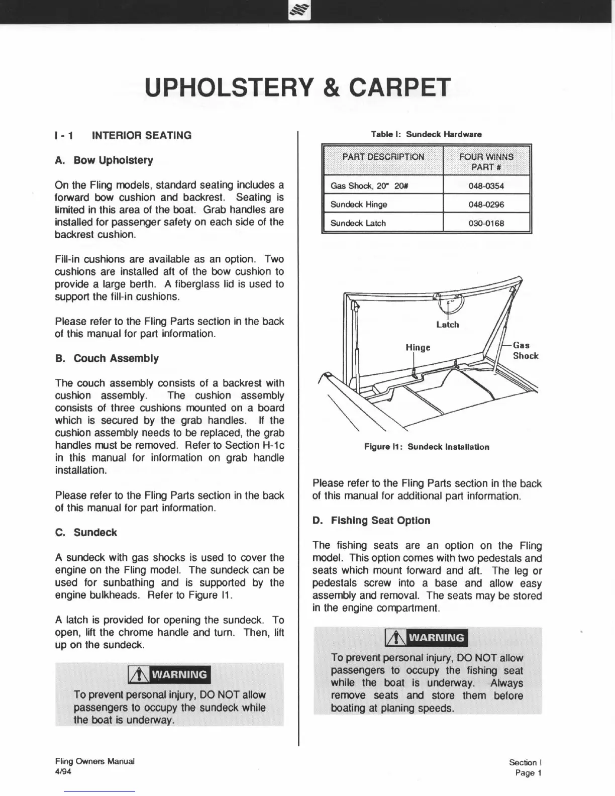 Four winns Fling - Upholstery and Carpet; Interior Seating; Sundeck Installation