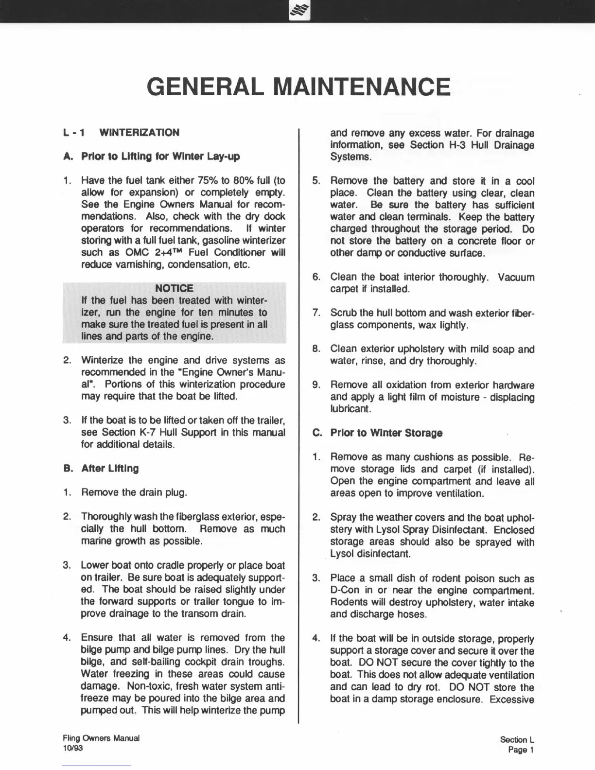Four winns Fling - GENERAL MAINTENANCE; Winterization Procedures