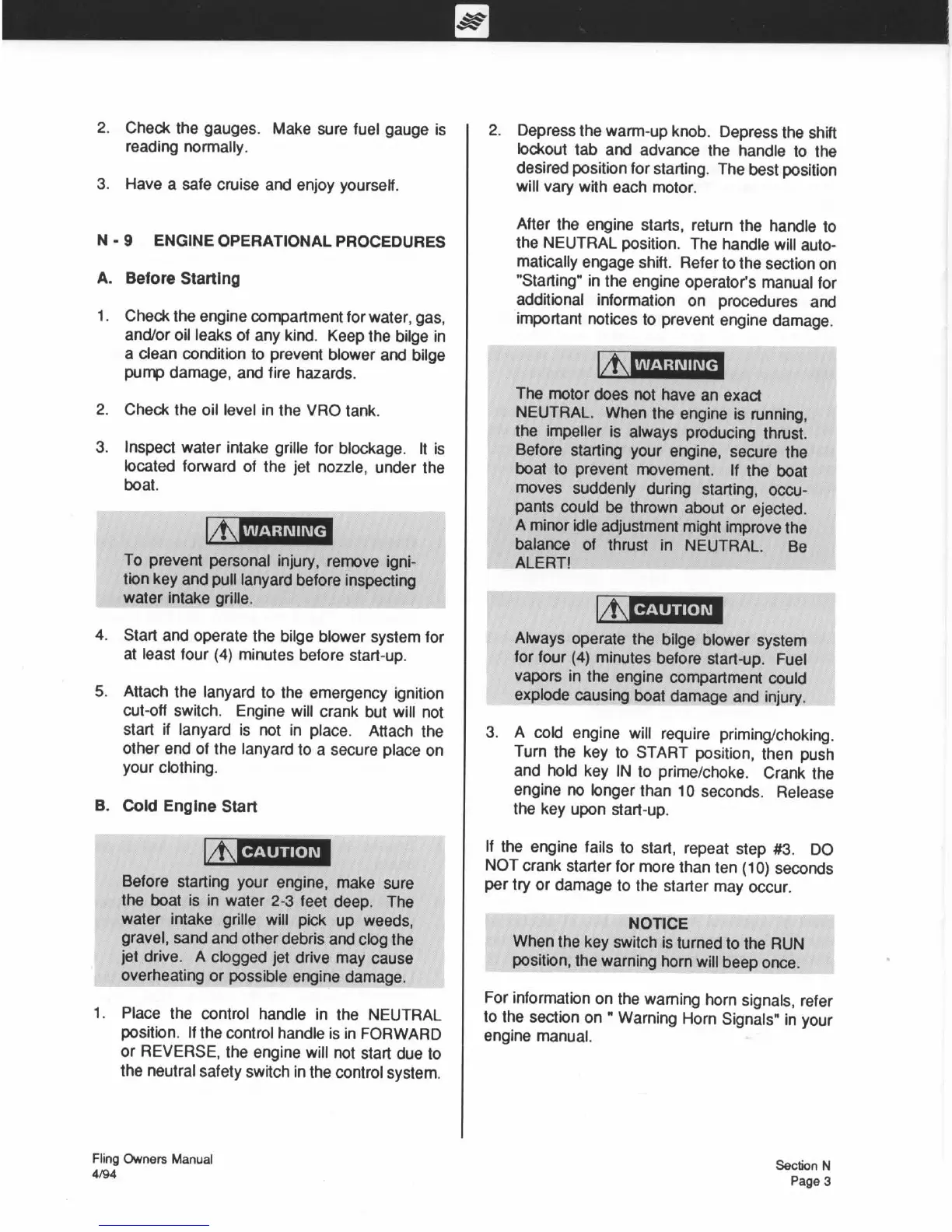 Four winns Fling - Engine Operational Procedures