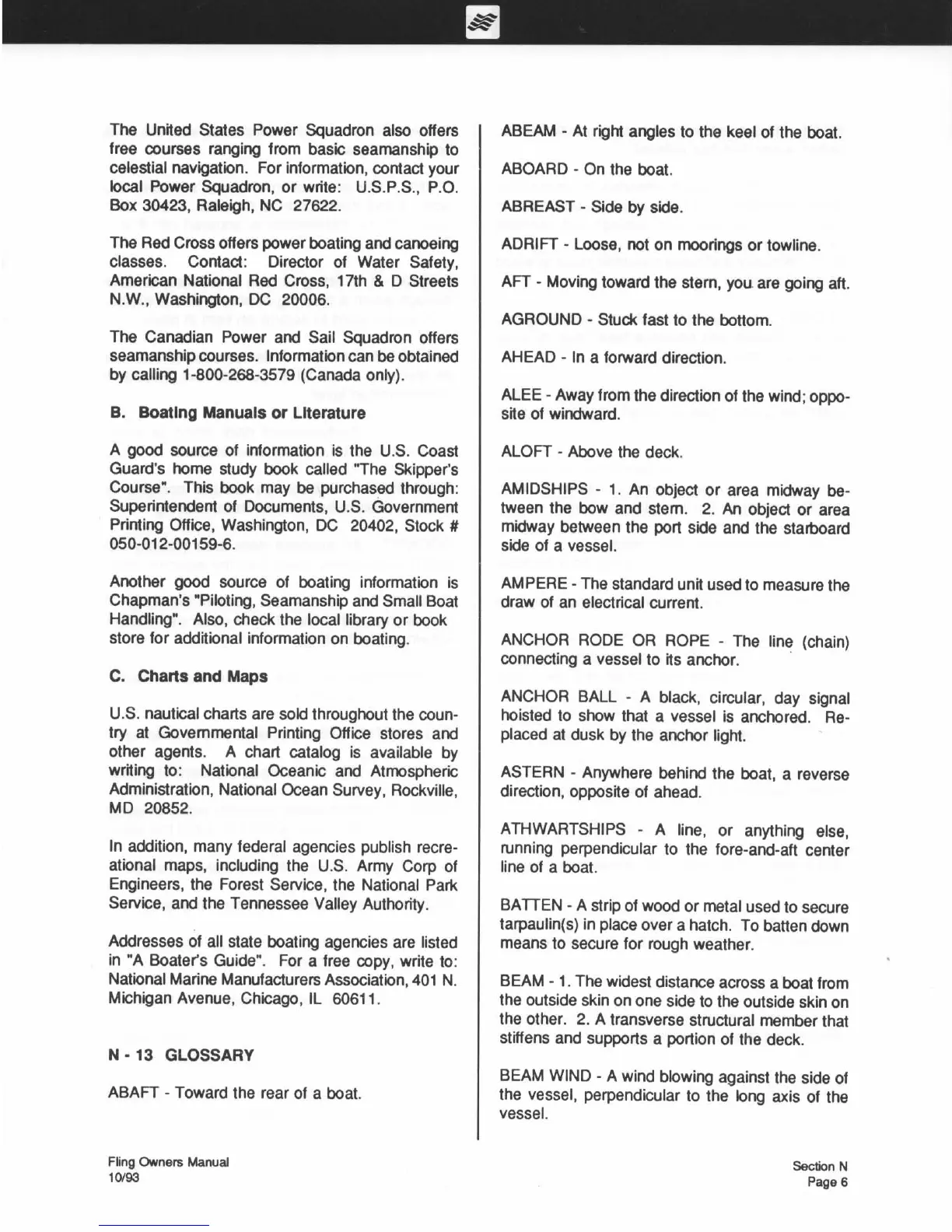 Four winns Fling - Boating Manuals or Literature; Charts and Maps; Glossary