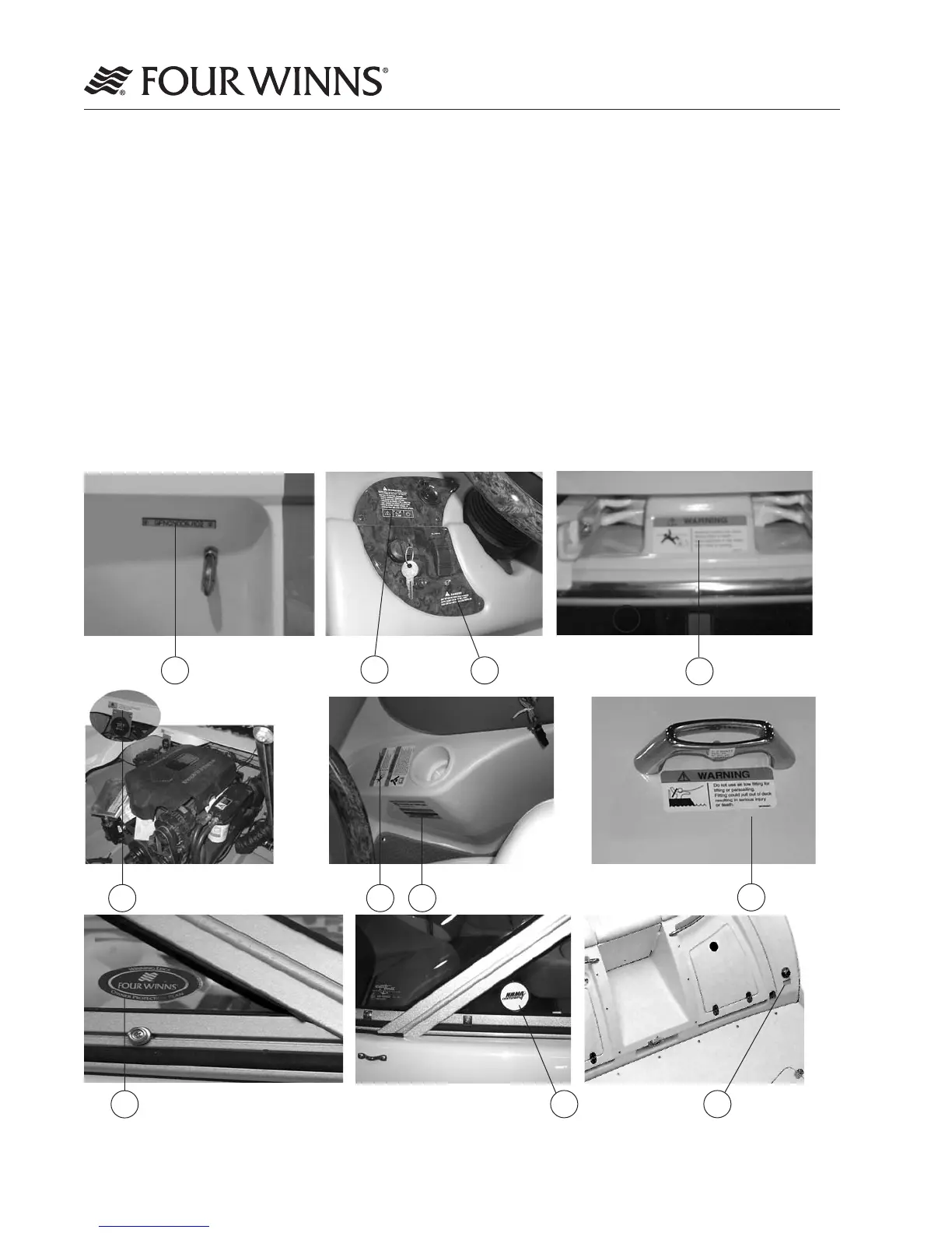 of this section for the actual wording of each of the various warning labels found on your boat.