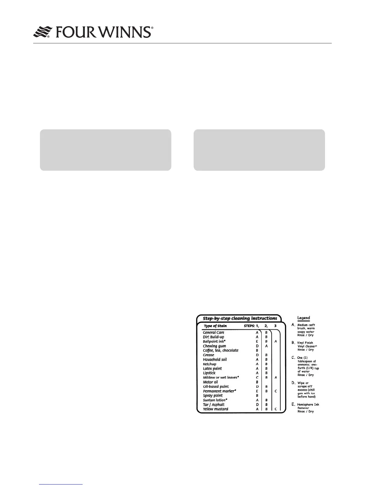 weeks when boat is in use. Regular cleaning with mild