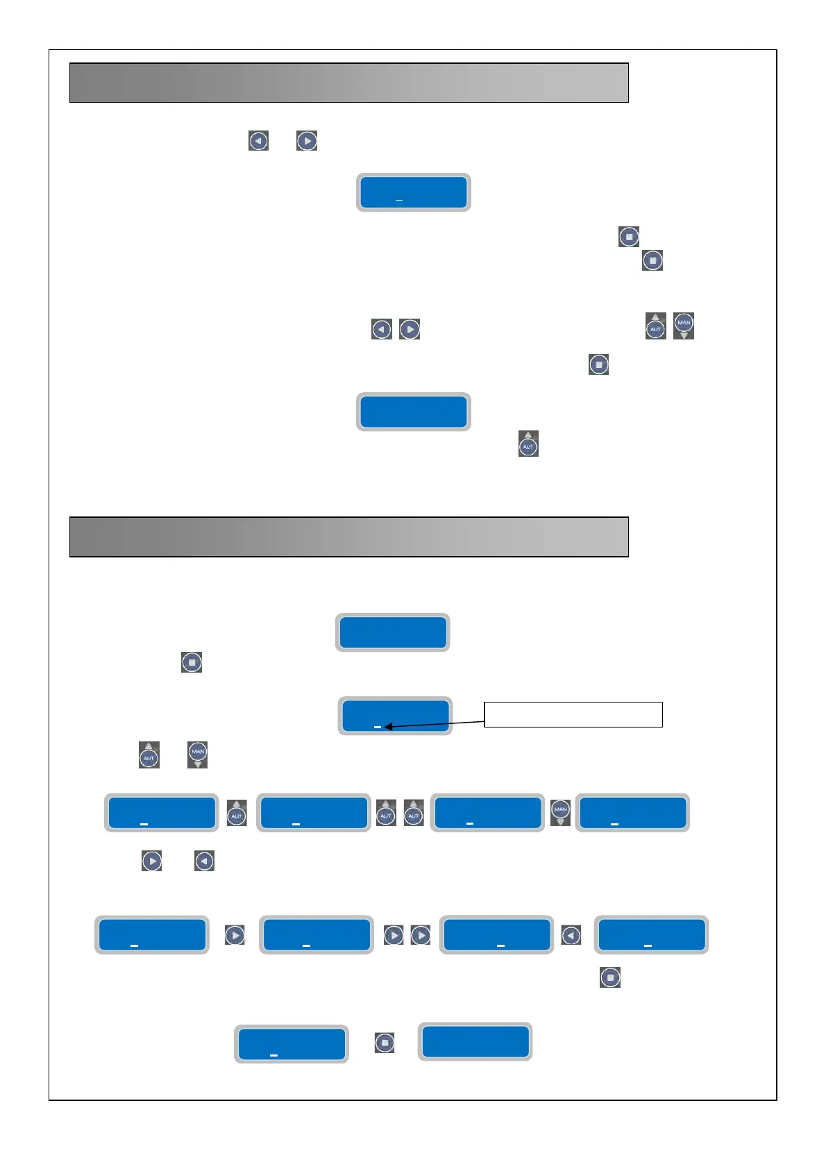 and will move the cursor to the appropriate digits to allow their settings to be changed (the flashing