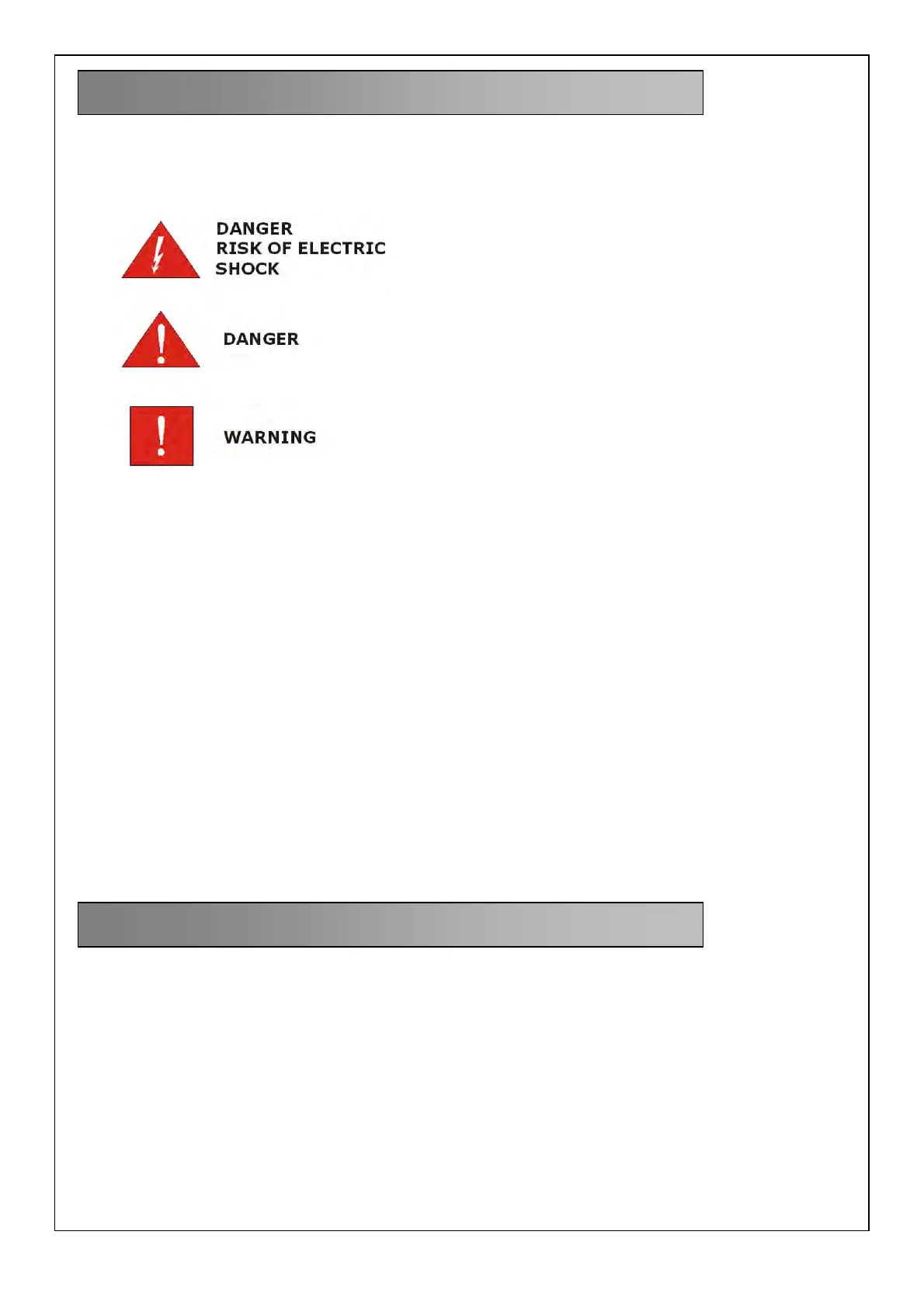 The following symbols, accompanied by the words: “DANGER”, “WARNING”, indicate the potential hazard