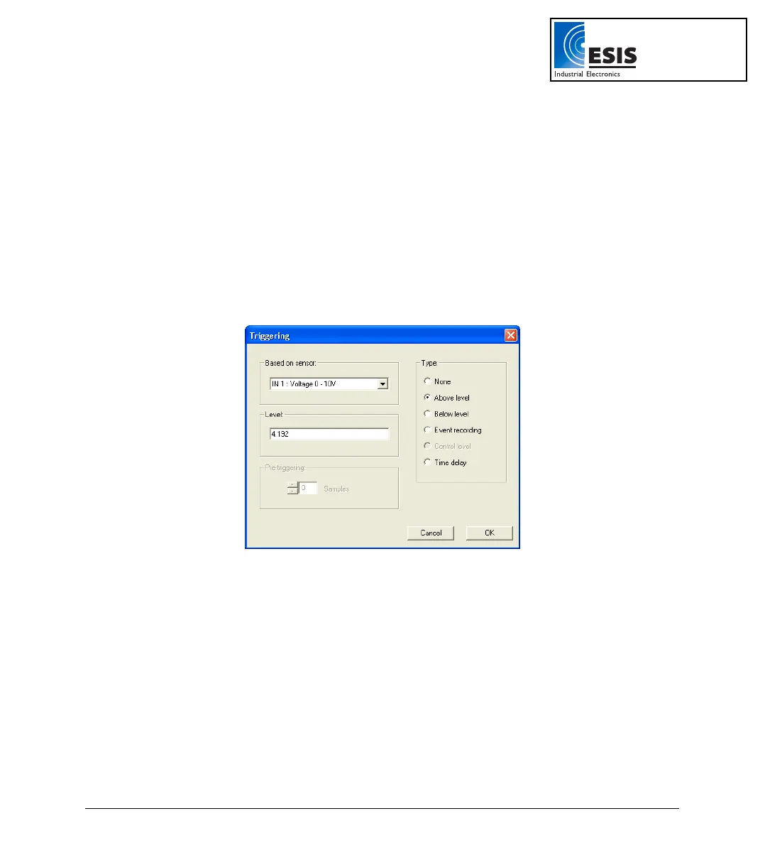Triggering in step 3 of the Setup wizard to open the triggering dialog: