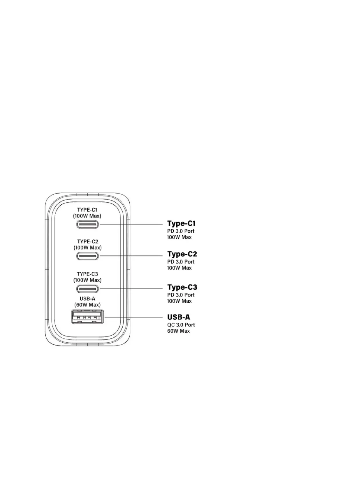 Type-C1 (PD3.0/Supported): 5.0V⎓3A, 9.0V⎓3A, 12V⎓3A, 15V⎓3A, 20v=3.25A, 20V⎓5A (100W Max)