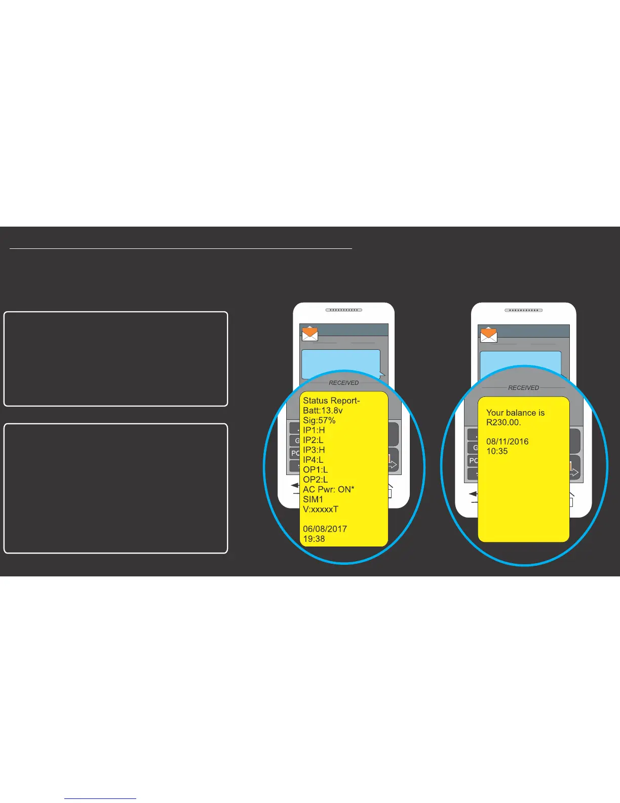 The users can request the INPUT, voltage, signal strength and SIM slot used or airtime on SIM1