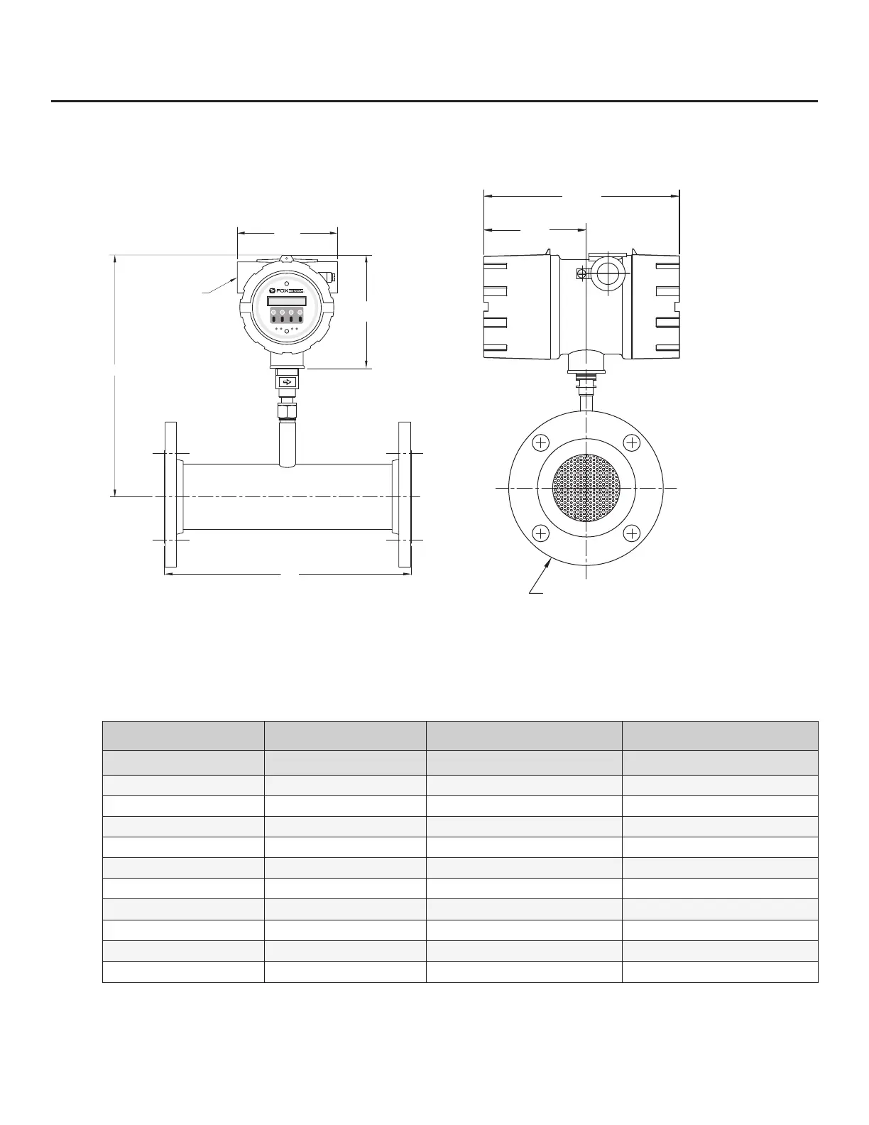 Fig. 8.8: Inline Meter with Flow Body and 150 lb. RF Flange End Connections Dimensions