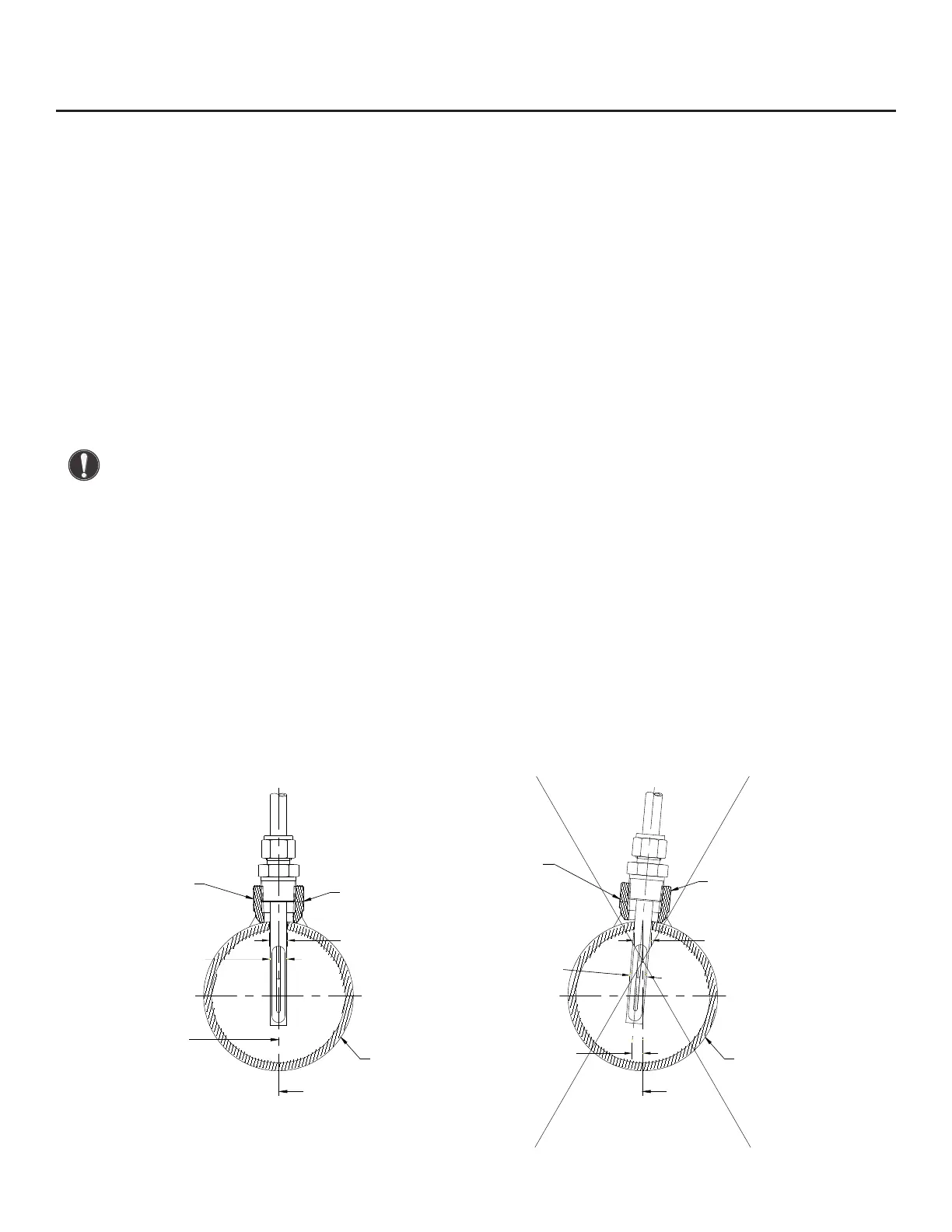 The probe of the FT3 must be installed perpendicular in the pipe to measure ow accurately. Use the