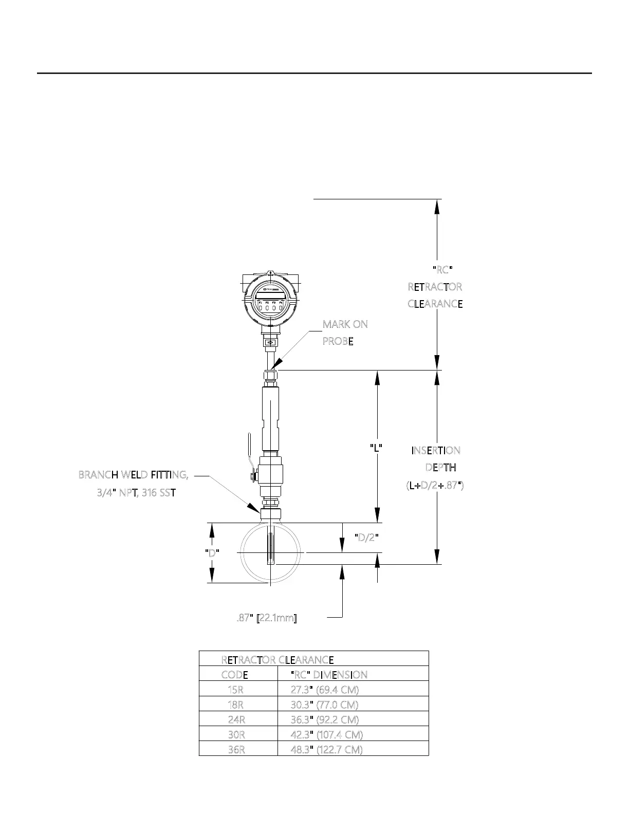 4. Using the equation (L + D/2 + 0.87") from Fig. 2.5, calculate the insertion depth and mark on the probe