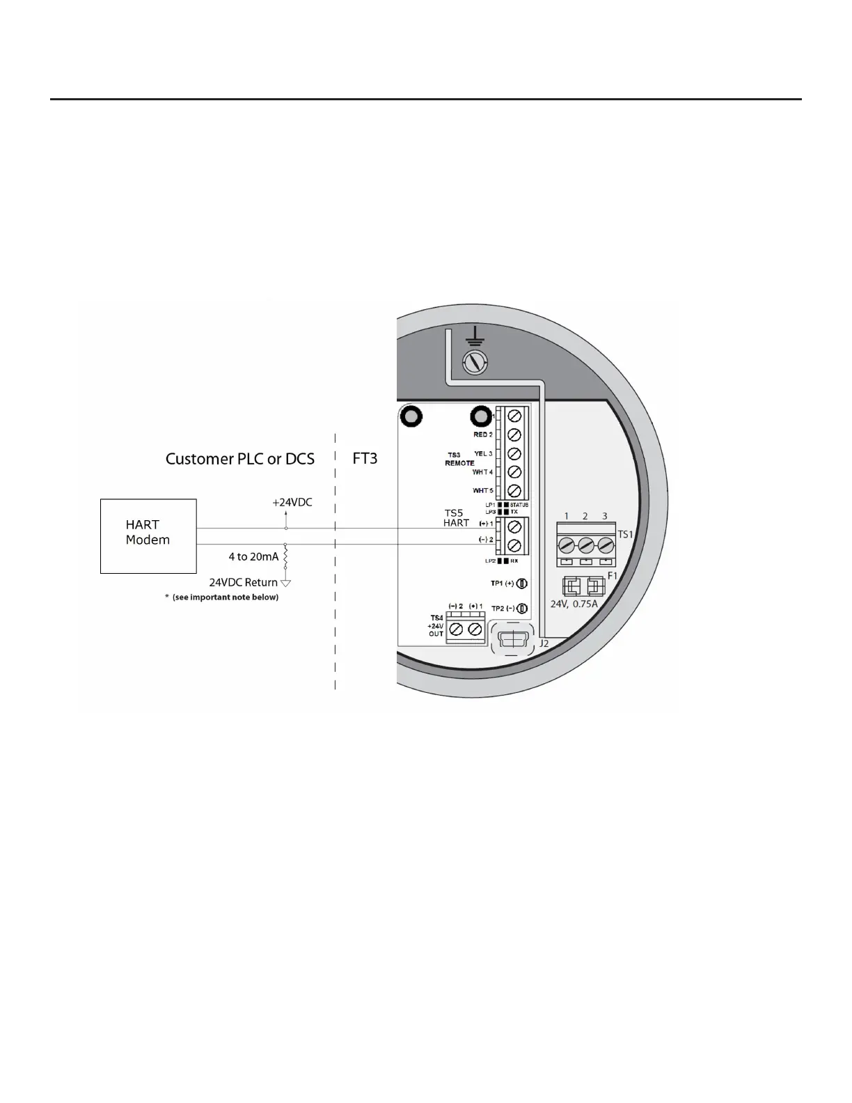 and pin 2(-). Terminal block TS5 is located on the HART communication option board of the FT3.