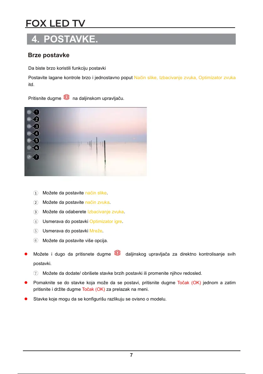 7 Možete da dodate/ obrišete stavke brzih postavki ili promenite njihov redosled.